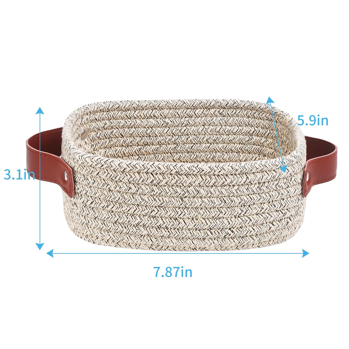 - Q: What are the dimensions of the ABenkle Small Storage Basket? A: The ABenkle Small Storage Basket measures 7.87 inches in length, 5.90 inches in width, and 3.15 inches in height.