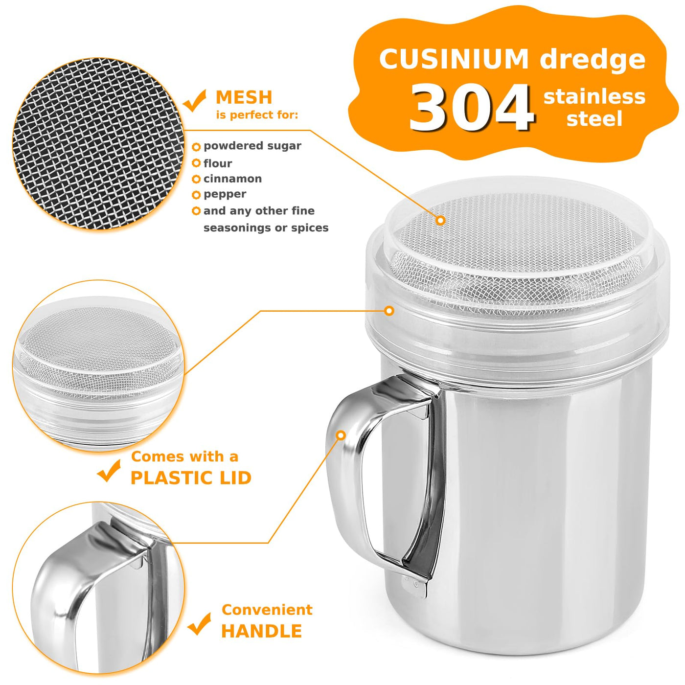 Accmor 2Pcs Powdered Sugar Shaker Duster, Cinnamon Shaker Flour Sifter, 10Oz Stainless Steel Fine Mesh Dredges Shakers For Cinna
