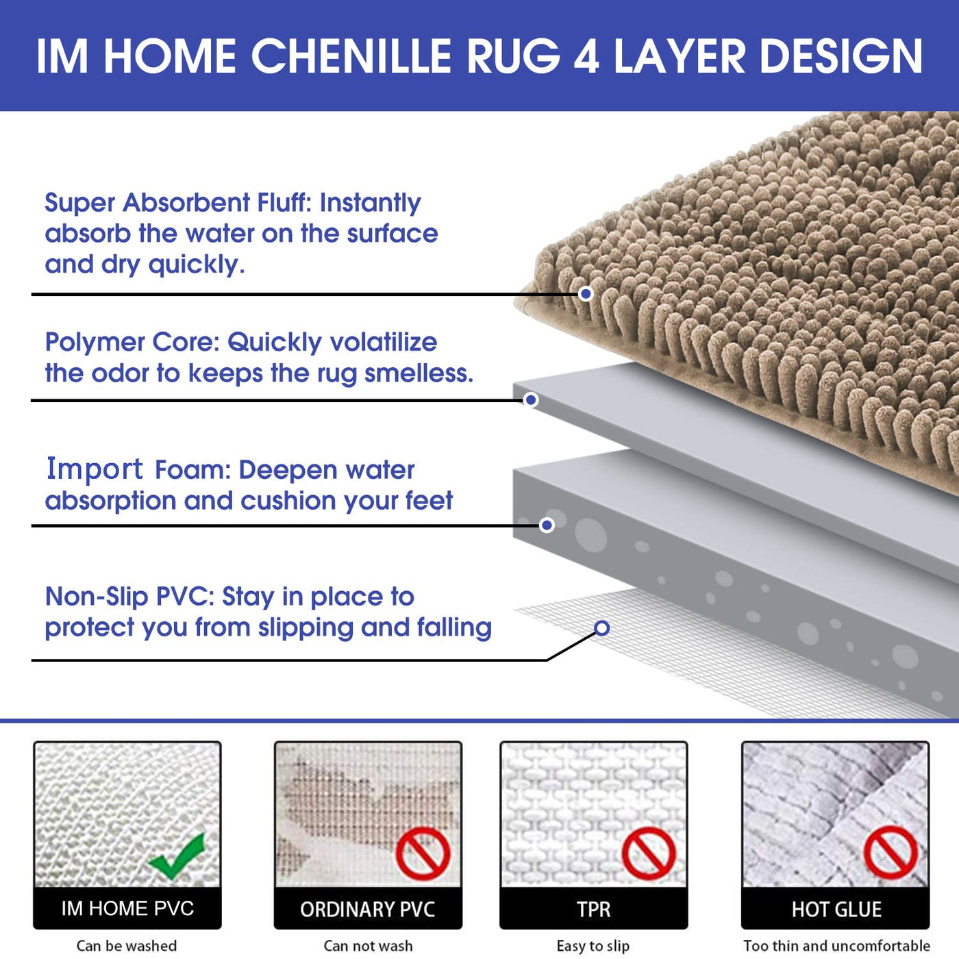 - Q: How does the rug help with water absorption? A: The ACCUMTEK Bathroom Rug Mat is designed with a high-density chenille fabric that provides exceptional water absorption, quickly drying wet feet after a shower.
