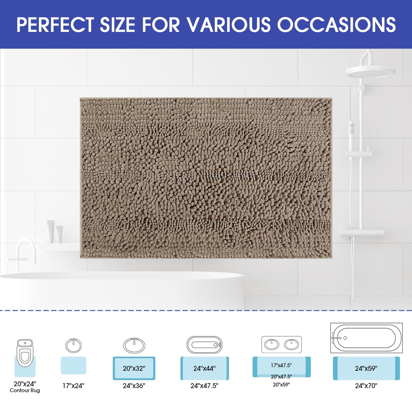 Accumtek Striped Dark Beige Bathroom Rug Mat 24''X17'' Ultra Soft, Non Slip Chenille Bath Rugs, Absorbent Plush Shaggy Bath Mats