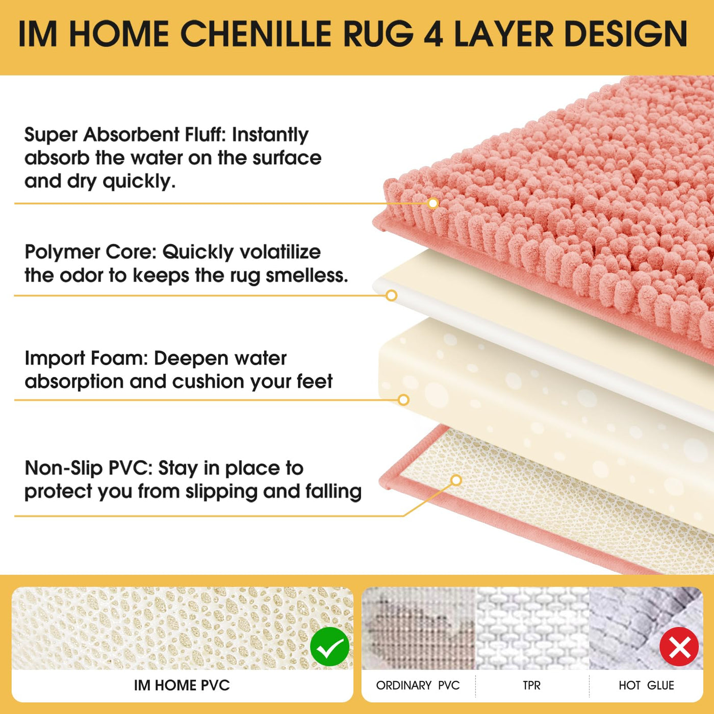 - Q: What benefits does the chenille material offer? A: Chenille material provides exceptional comfort and support for your feet, with a thick pile that soothes tired feet and offers amazing water absorption to keep your floor dry.
