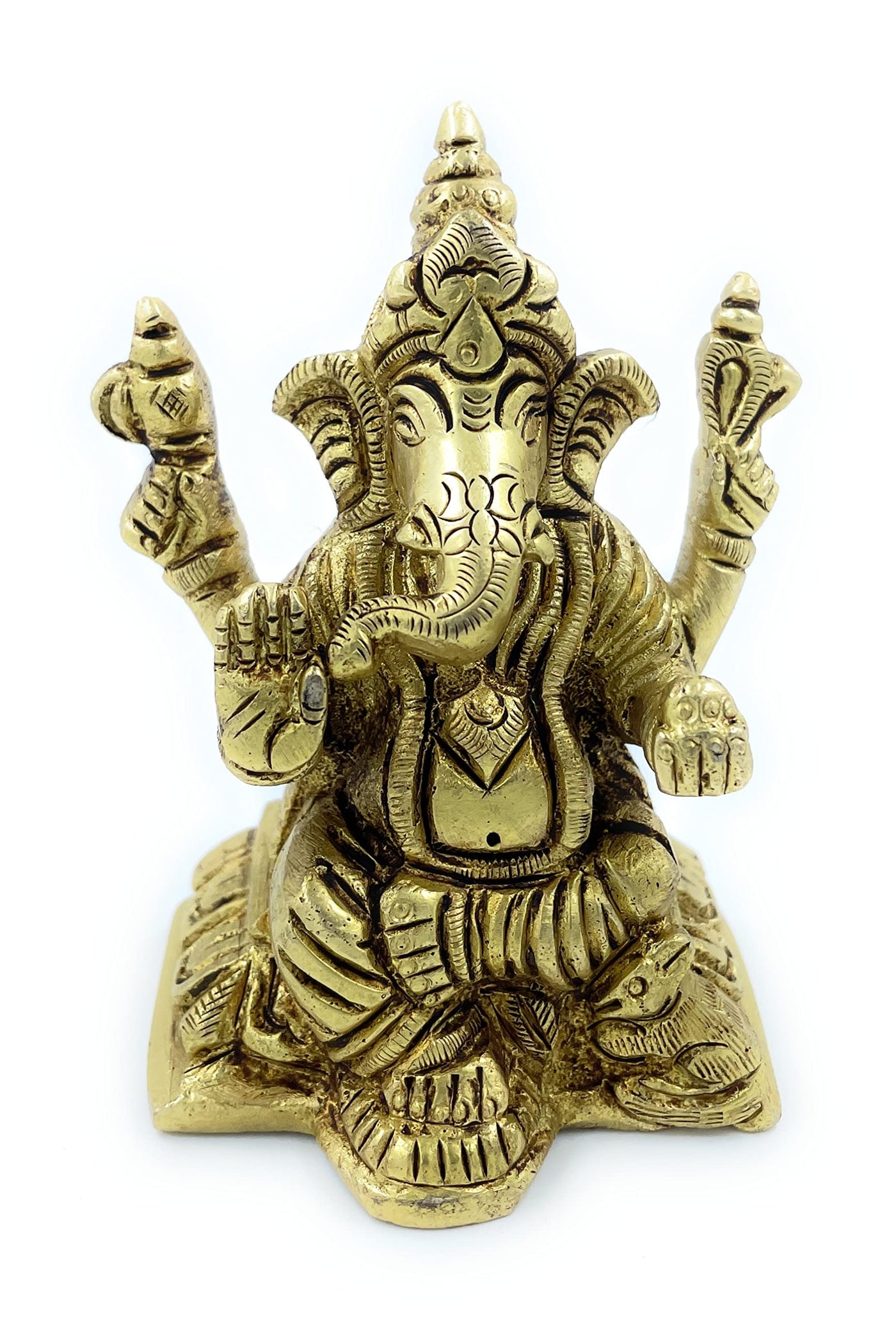 Achleshwar Pure Ashtadhatu Right Hand Sund(Trunk) Lord Ganesh Idol In Chowki Shaped Base With Musak(Mouse)|Office||Home||Temple||Gift|Handcarved Superfine Finish Lacquer Coated.