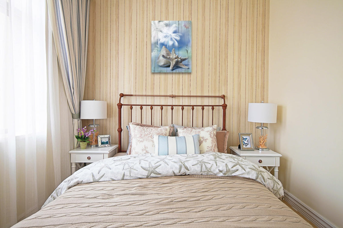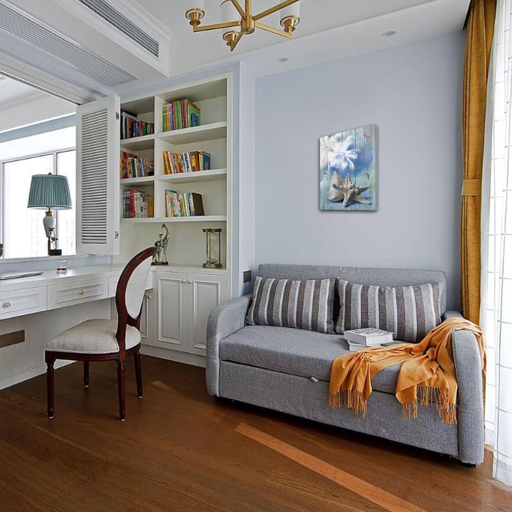 Acocifi Bathroom Blue Ocean Picture Palm Tree Coastal Conch Seashell Painting Starfish Canvas Wall Art Modern Artwork Framed For