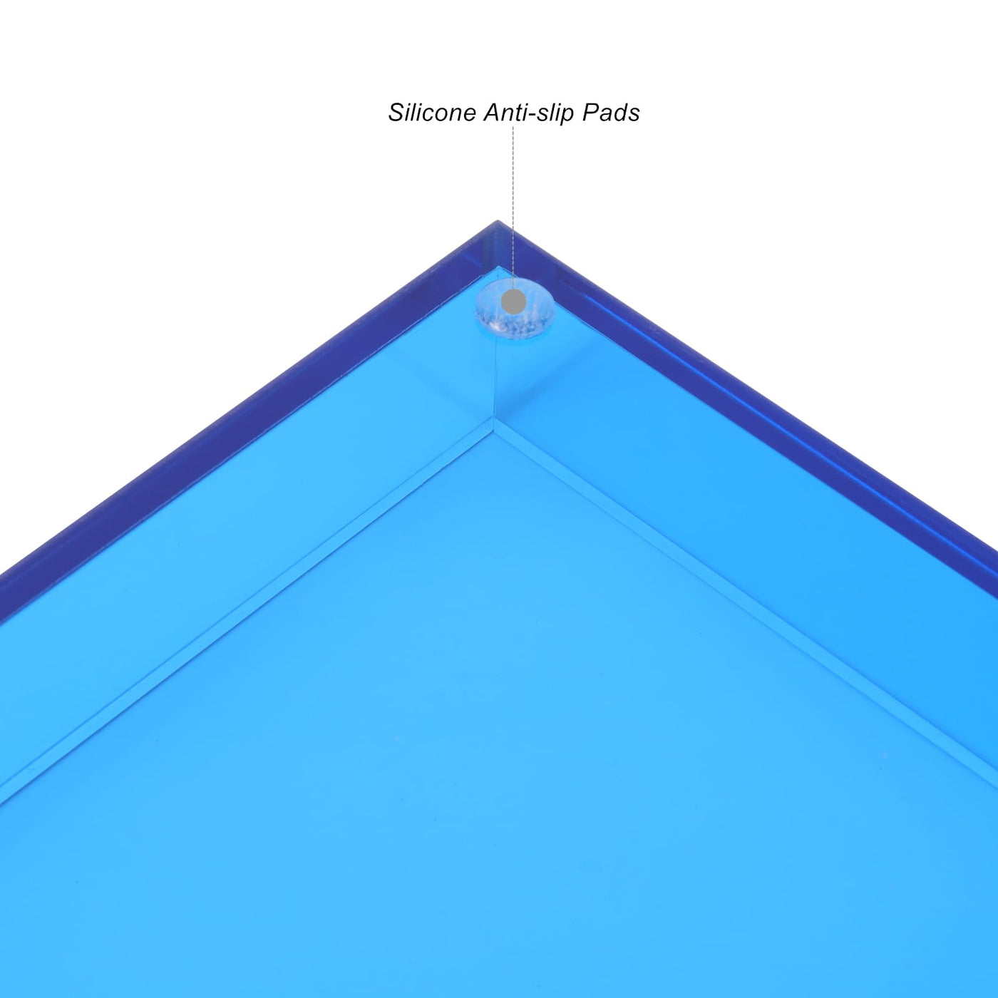 Acrylic Tray For Vanity Makeup Perfume Jewelry 12X6'' Small Decorative Tray For Bathroom Dresser Tops Candle Sink Counter, Blue