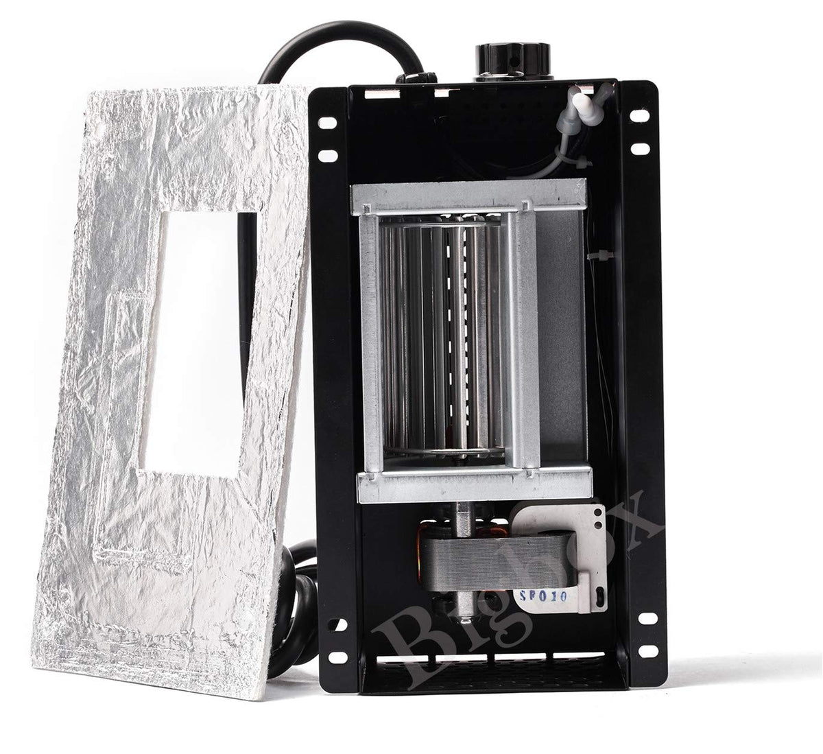 • Q: What is included in the blower kit? A: The kit includes the wood stove blower fan, a 6-foot power cord, four mounting screws, one heat gasket, and a rheostat for variable speed control.