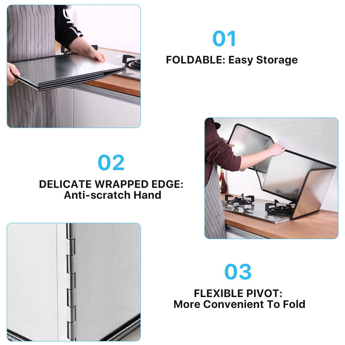 Aemygo 4 Sided Splatter Guard, Foldable Stainless Steel Grease Splatter Screen, Anti Splatter Splash Guard, Proof Baffle Stove H