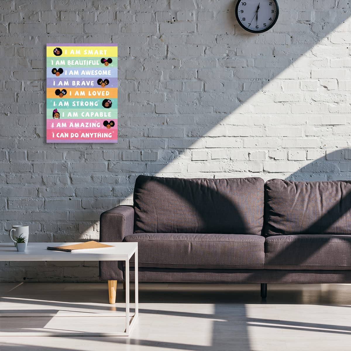 Affirmation Wall Decor,I Am Smart Black Girl Affirmation Inspirational Wall Art Canvas,Black Girl Motivational Canvas Framed Wal