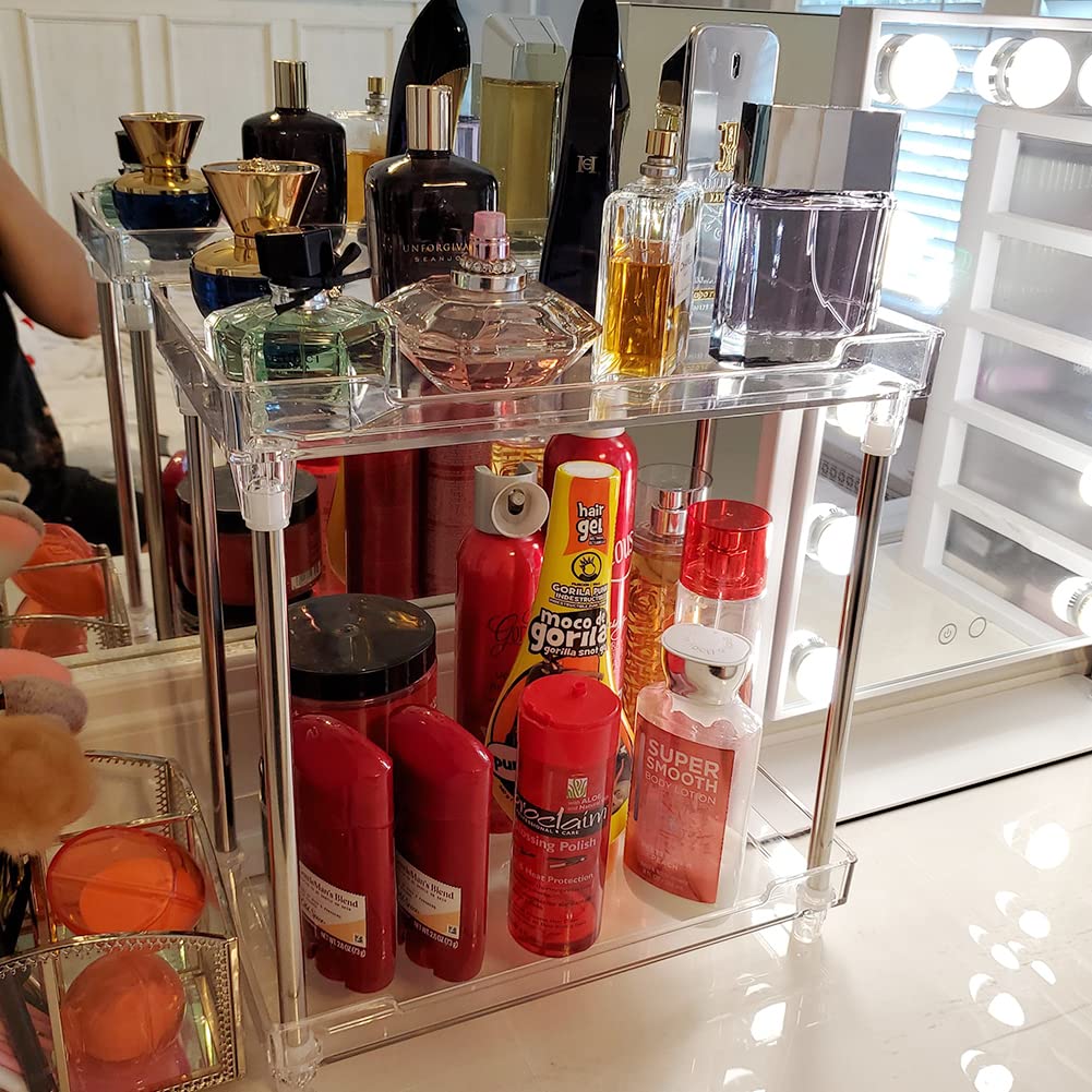 Afoobezos 2-Tier Storage Shelves, Multifunctionl Vanity Makeup Organizers, Clear Display Tray Caddy Stand For Bathroom Kitchen B