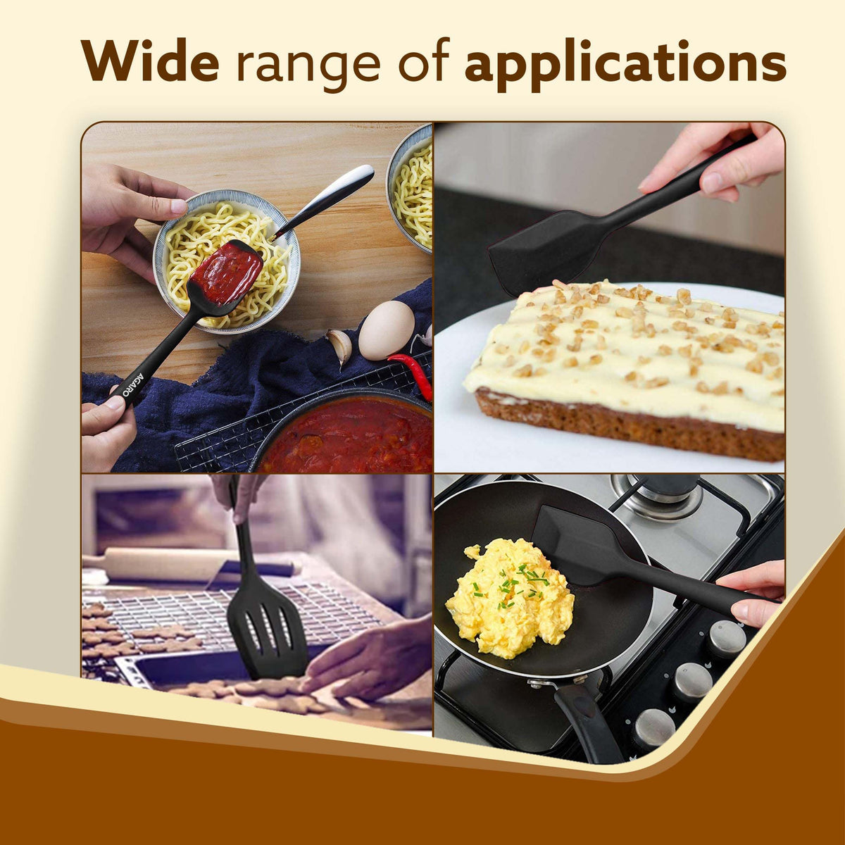 AGARO Deluxe Silicone Spatula Set of 3, Heat Resistant, Cooking, Baking and Mixing, Non-Stick Cookware, BPA Free, Seamless Design, Black.