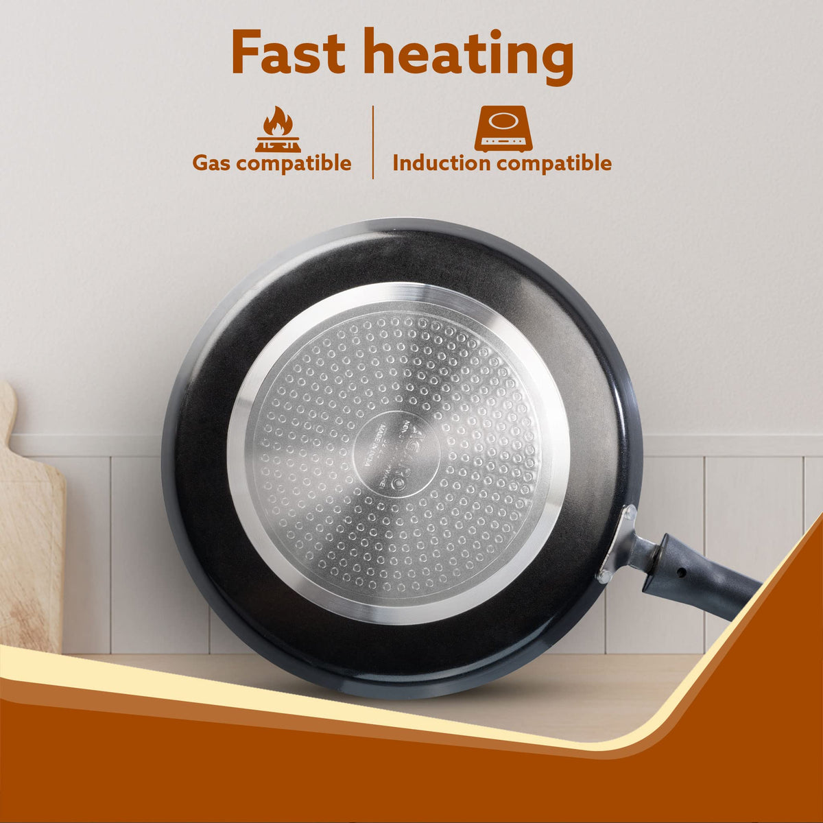 AGARO Elegant Non Stick Tawa, 28 cm Diameter, Induction and Gas Oven Friendly, Riveted Cool Touch Handle, Granite Finish, PFOA F