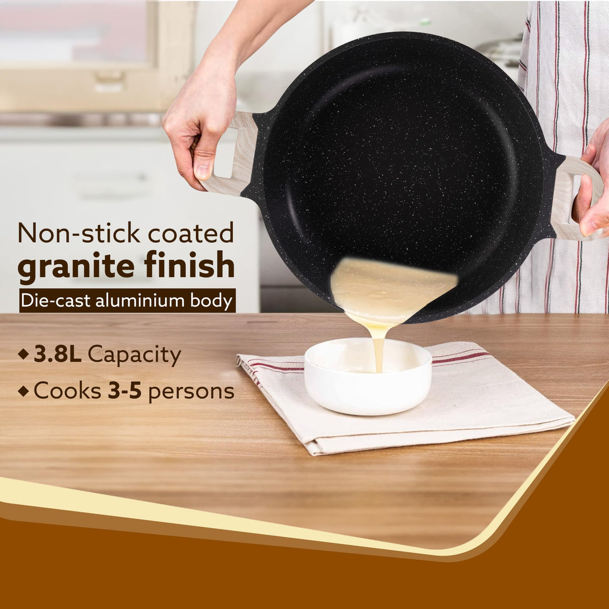 AGARO Imperial Granite Non Stick Kadai with Glass Lid, 3.8L / 28cm, Deep Frying Pan, Biryani Pot, Cast Aluminium Body, Gas & Ind