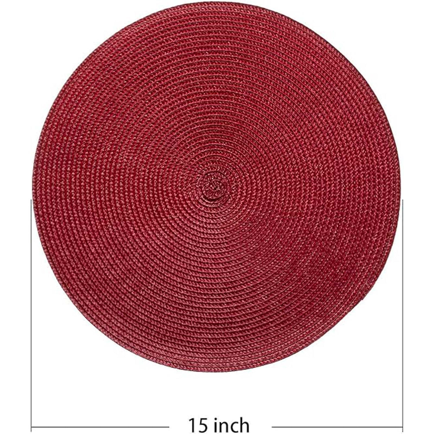 - Q: What is the size of these placemats? A: Each placemat has a diameter of 15 inches.