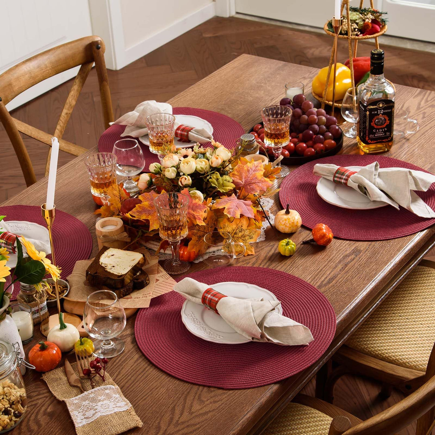 Ahhfsmei Round Braided Placemats 15 Inch Round Table Mats For Dining Tables Natural Woven Heat Resistant Place Mats Set Of 4 (Ta