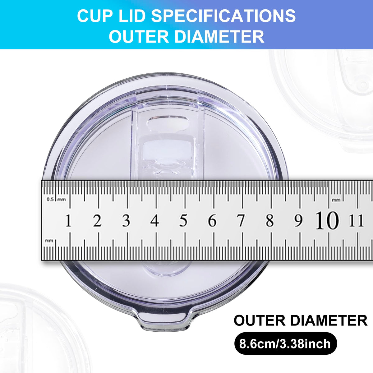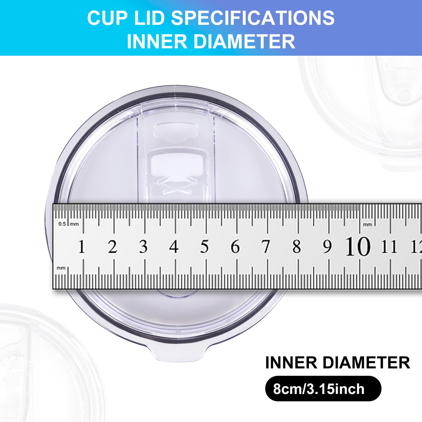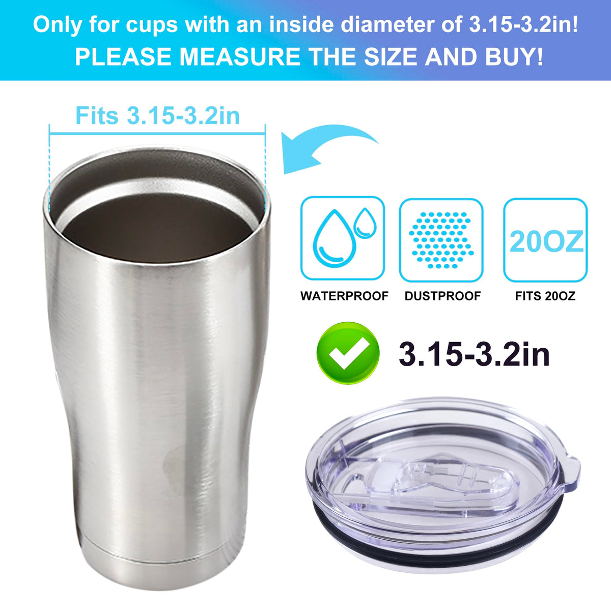 - Q: What size cups are compatible with these lids? A: These lids are compatible with cups that have an inside diameter of 3.15 to 3.2 inches, typically fitting standard 20 oz tumblers.