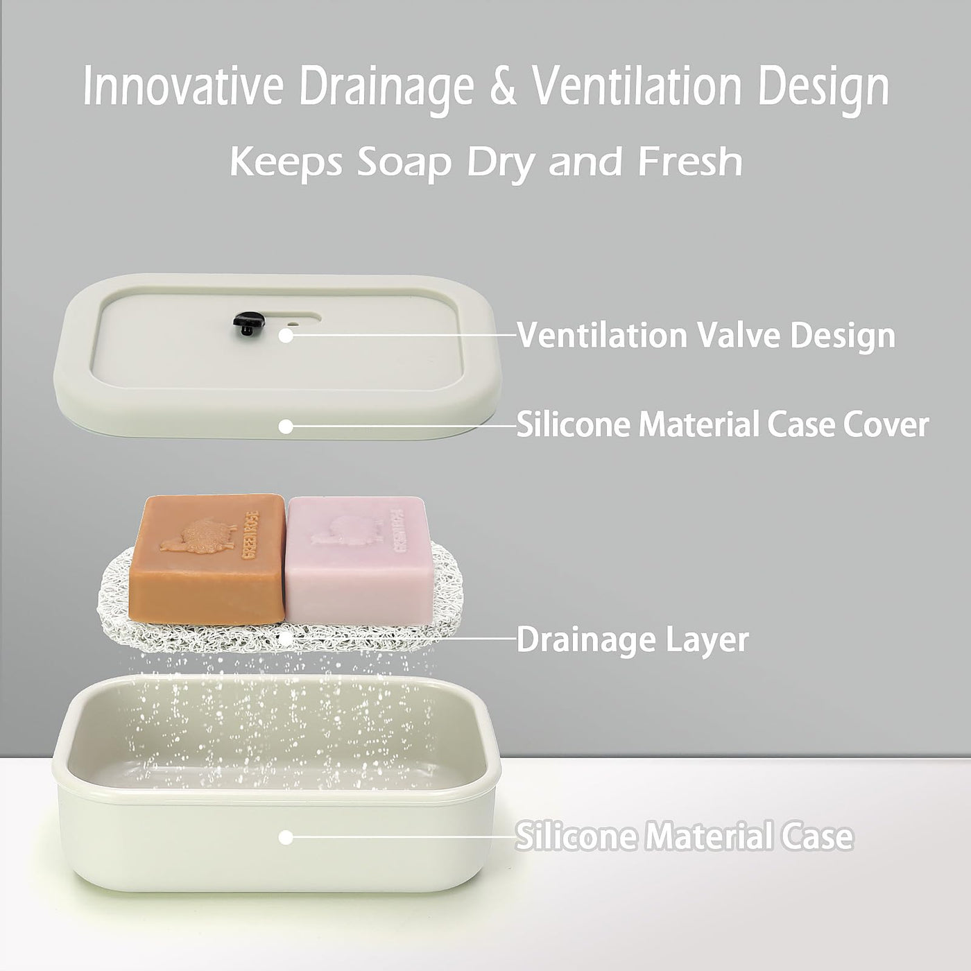 Aidimming Enhanced Leak Proof Travel Soap Case,Shatterproof Silicone Soap Holder For Traveling, Shampoo And Conditioner Bars Soa