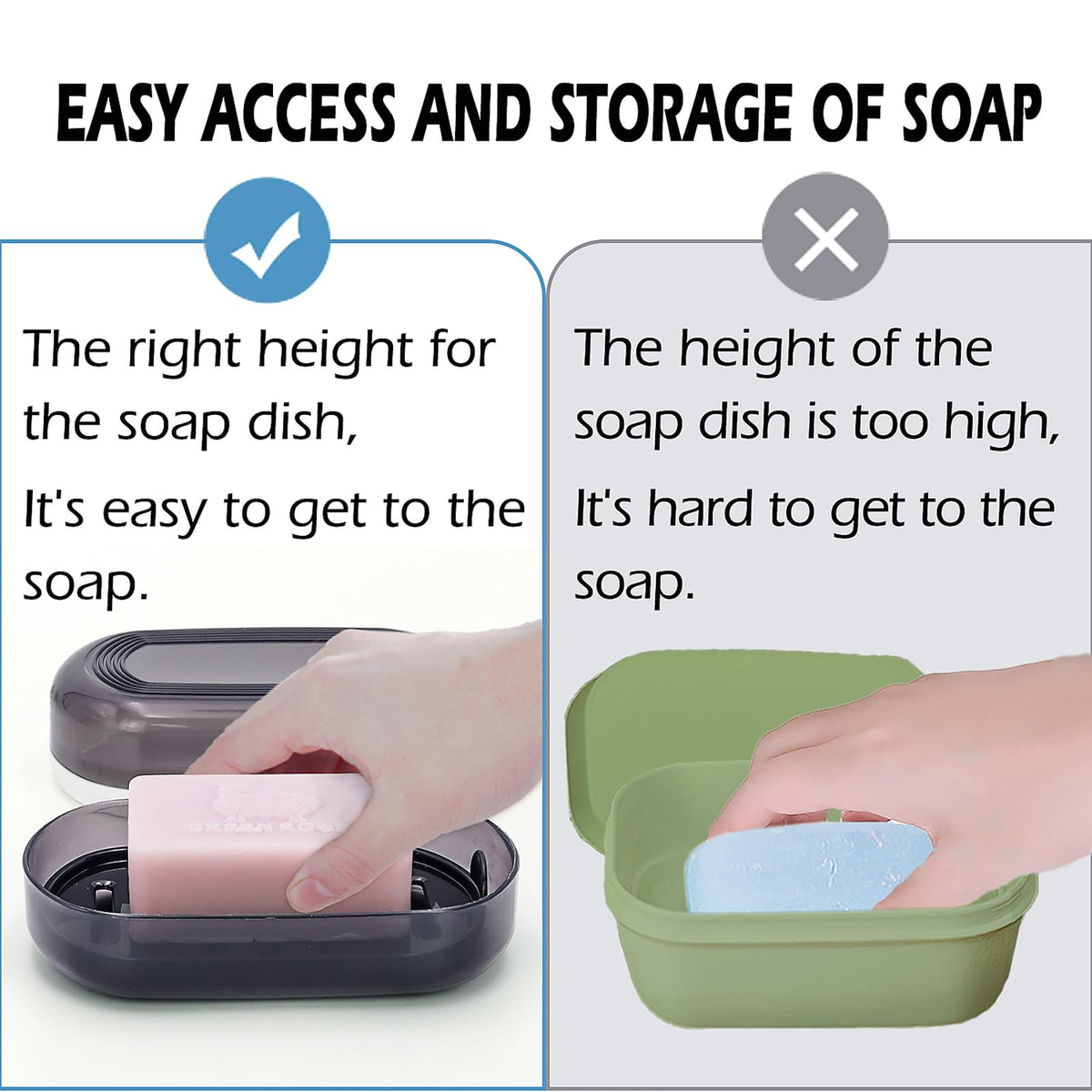 • Q: Does the travel soap holder have a drainage feature? A: Yes, it includes a drainage tray that allows water to drain quickly, keeping your soap dry and countertops clean.