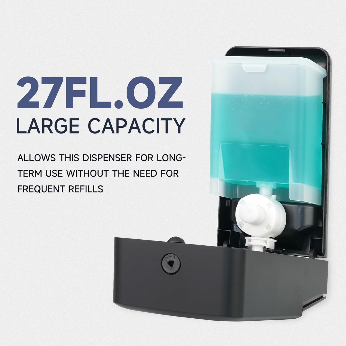 Aike Wall Mount Liquid Soap Dispenser For Commercial Bathroom 27Oz Large Capacity Manual Push Pump Black