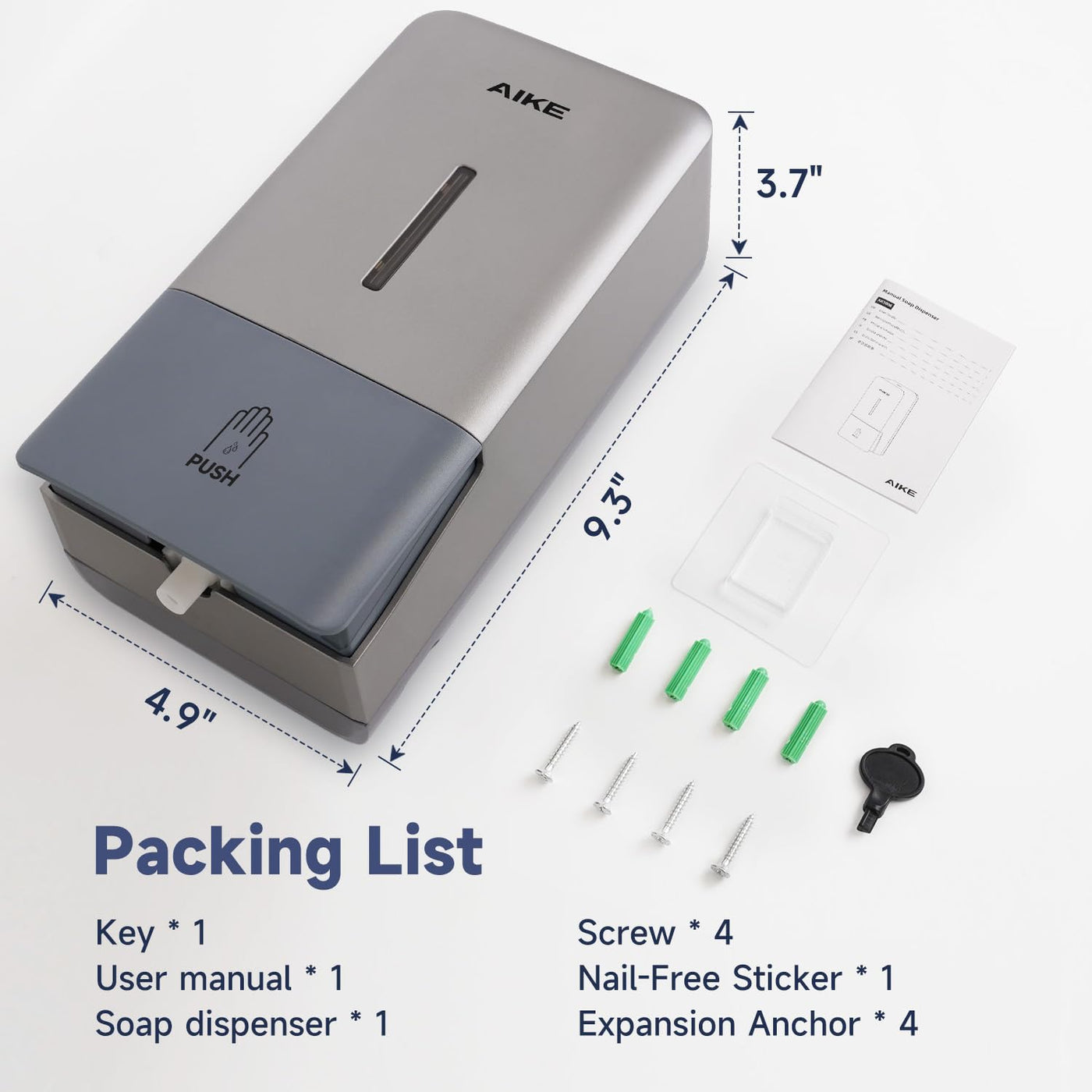 Aike Wall Mount Liquid Soap Dispenser For Commercial Bathroom 27Oz Large Capacity Manual Push Pump Silver