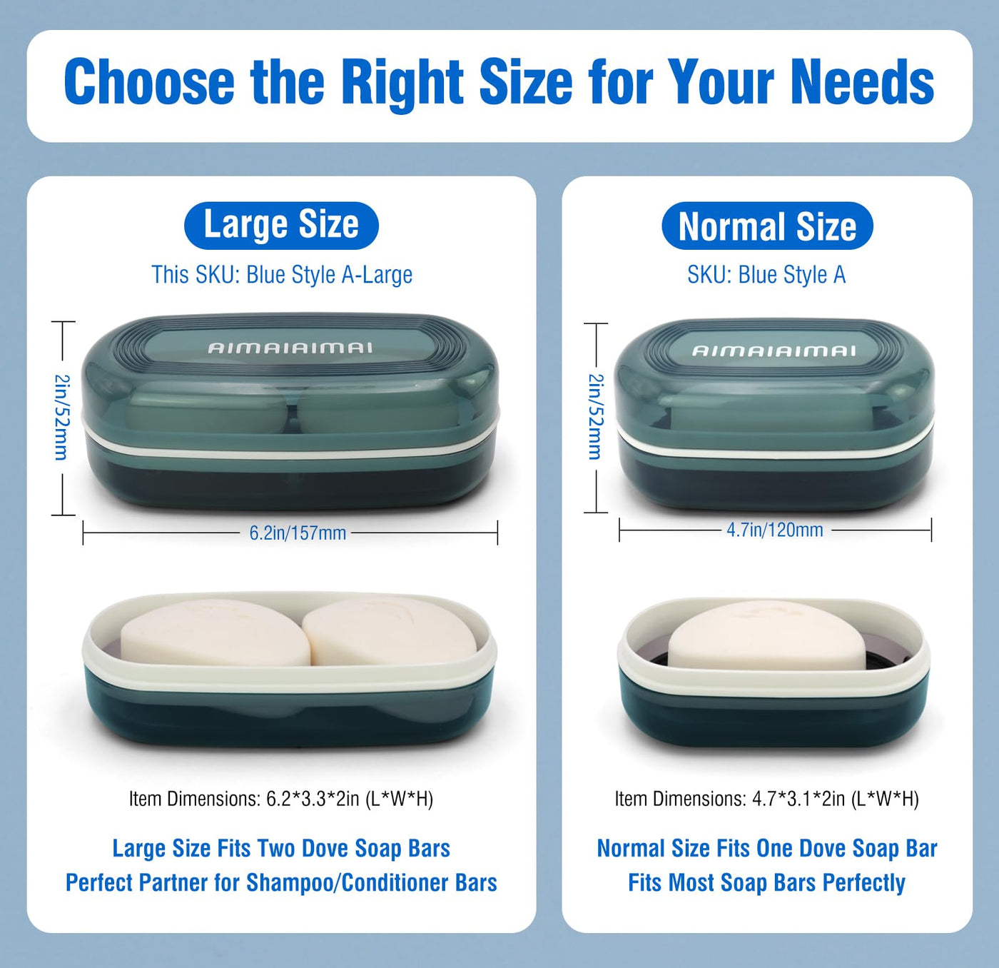 Aimaiaimai Shampoo Bar Holder, Travel Soap Container, Large Soap Box, Soap Dish With Draining Layer, Soap Case For Bathroom, Tra