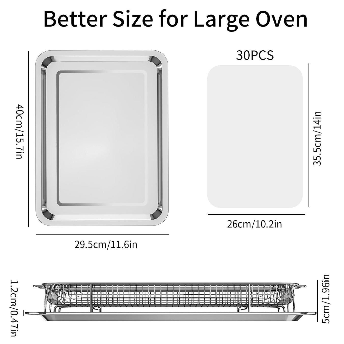 Air Fryer Basket For Oven, Openice 15.6'' X 11.6'' Large Air Fryer Basket And Pan With 30Pcs Parchment Papers, Stainless Steel O