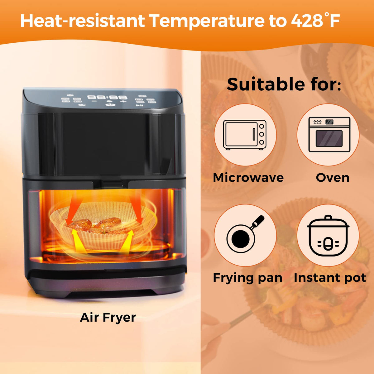 - Q: Can I use these liners in an oven? A: Yes, these liners can be used in air fryers, toaster ovens, microwaves, and pans.