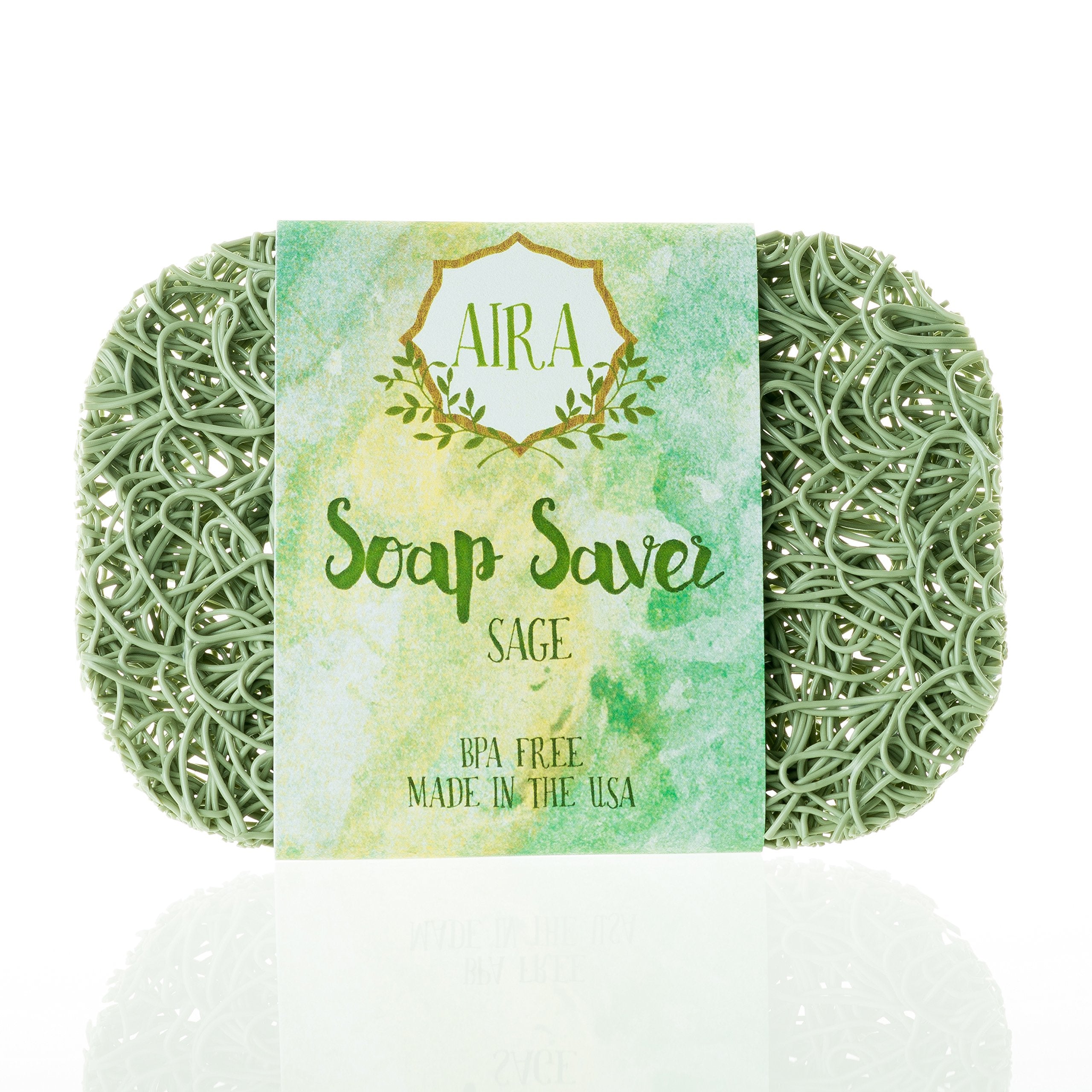 Aira Soap Saver - Soap Dish & Soap Holder Accessory - BPA Free Shower & Bath Soap Holder - Drains Water Circulates Air Maximizes Soap Life - Easy to Clean Fits All Soap Dish Sets - Sage