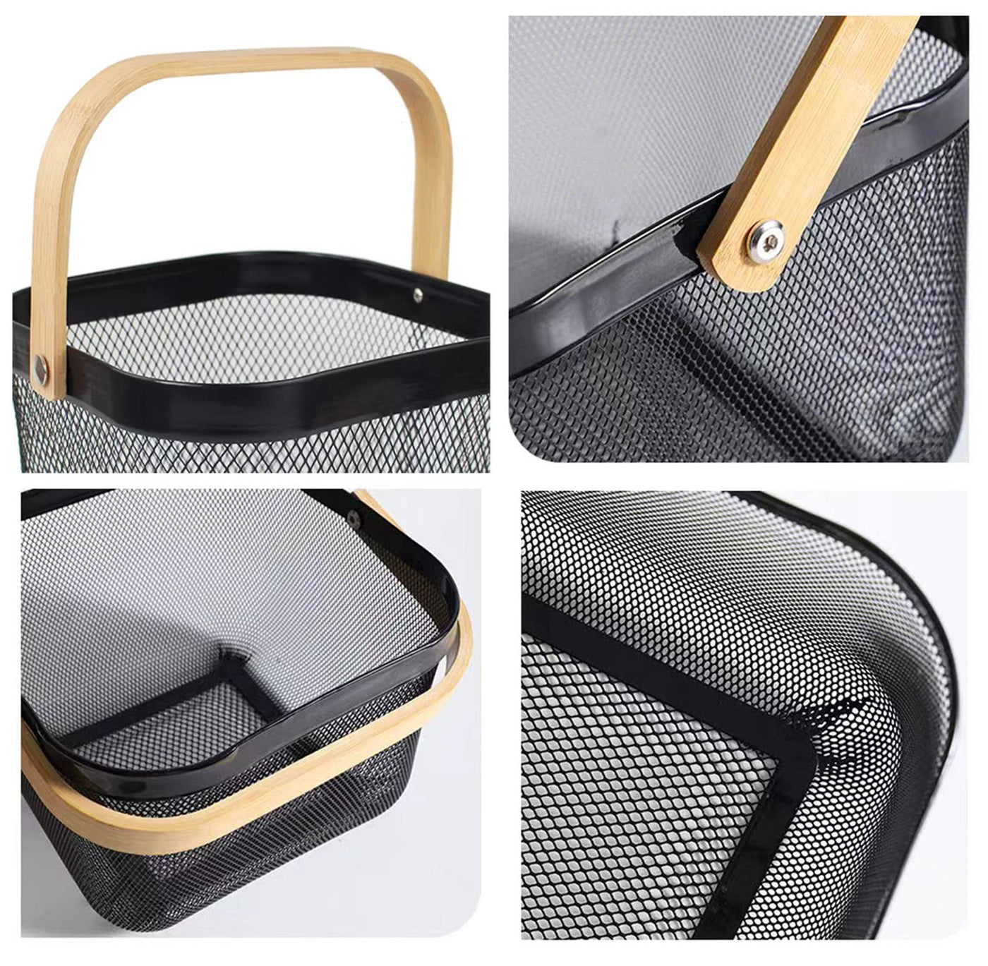 - Q: How does the wooden handle benefit the use of the basket? A: The stylish wooden handle makes it easy to carry the basket and fits comfortably into shelving and cabinets.