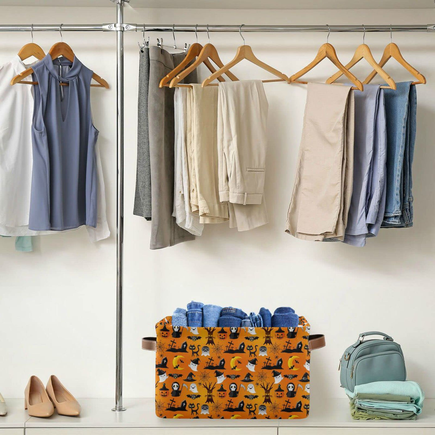 Alaza Cartoon Halloween Skull Cat Yellow Foldable Storage Box Storage Basket Organizer Bins With Handles For Shelf Closet Living