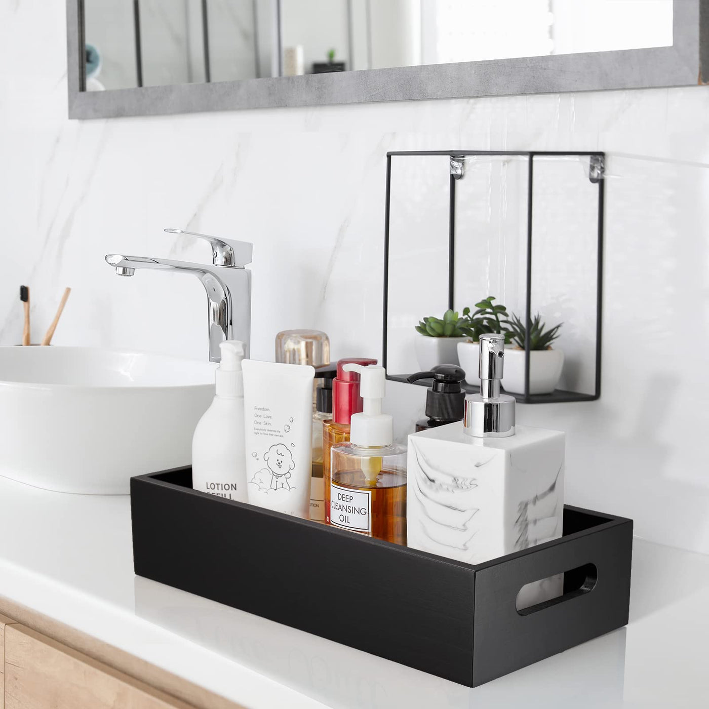 - Q: What are the dimensions of the ALELION Black Bathroom Basket? A: The specific dimensions of the ALELION Black Bathroom Basket are not provided, but it is designed to fit conveniently on top of toilet tanks and bathroom countertops.