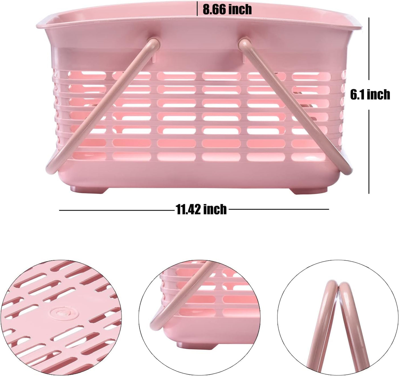Alink Plastic Shower Caddy Basket With Handle, Portable Organizer Storage Basket For College Dorm, Bathroom, Kitchen - Pink
