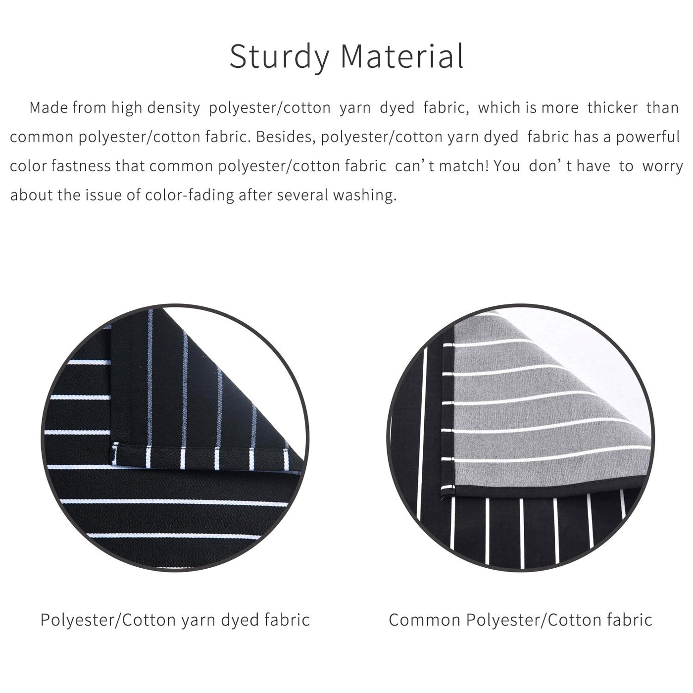 • Q: Does the apron come in different colors or patterns? A: This specific apron features a black and white pinstripe design, but additional colors or patterns may be available in other listings.
