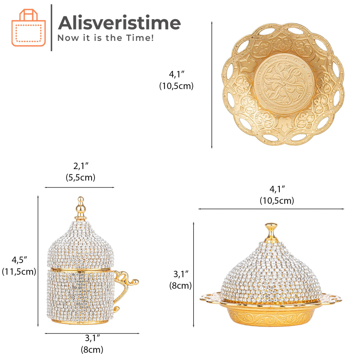 Alisveristime Ottoman Turkish Greek Arabic Espresso Coffee Cups With Saucer And Lid (Crystal Set) (Set Of 2) (Gold)
