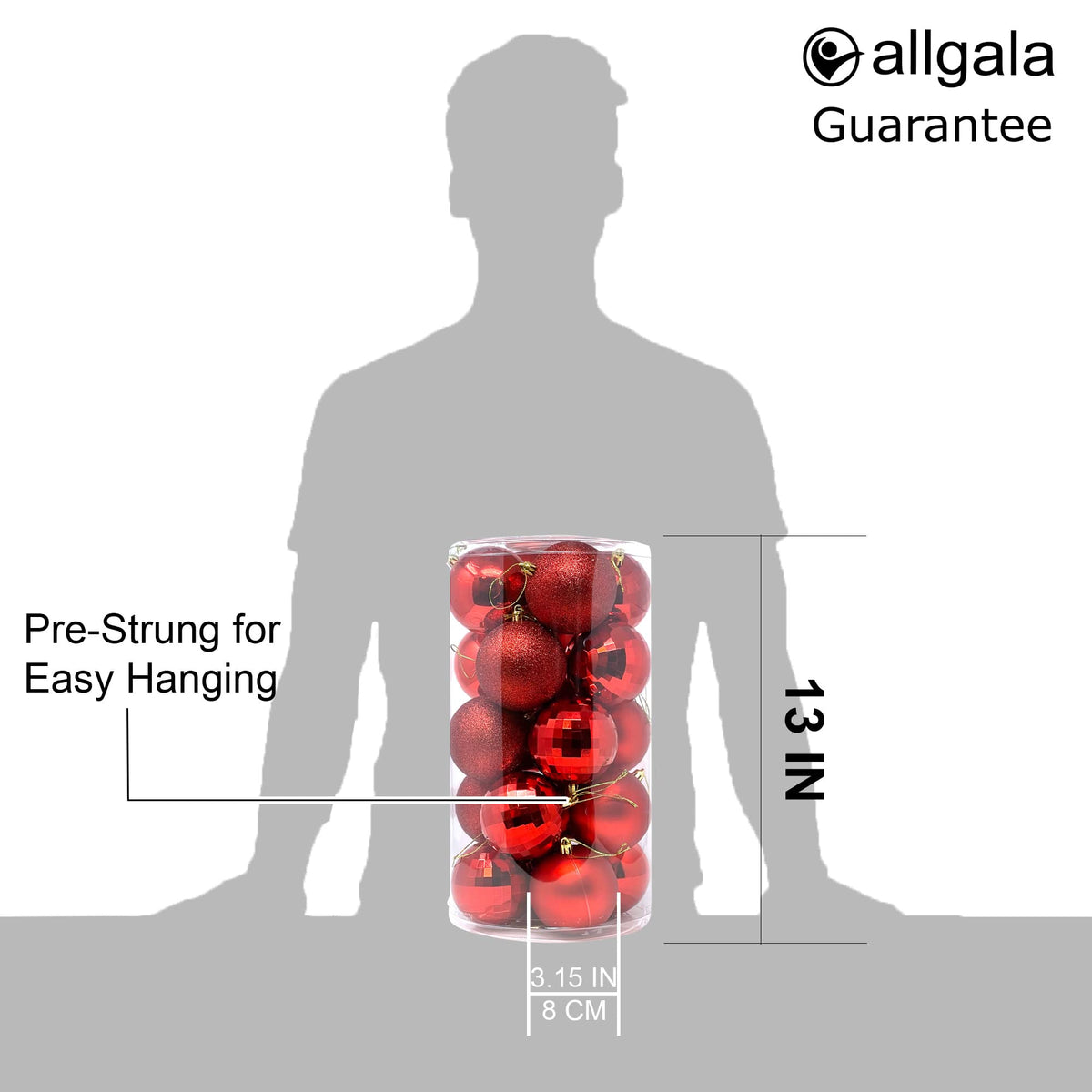 allgala 20 PK 3 Inch (8CM) Large Christmas Ornament Balls for Xmas Tree-4 Style-Red