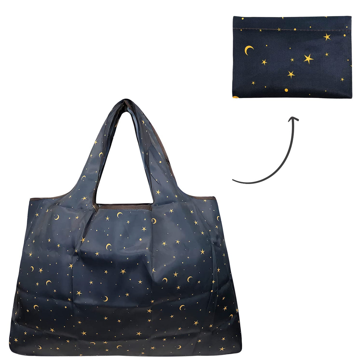 Allydrew Large Foldable Tote Nylon Reusable Grocery Bag, Moon & Stars