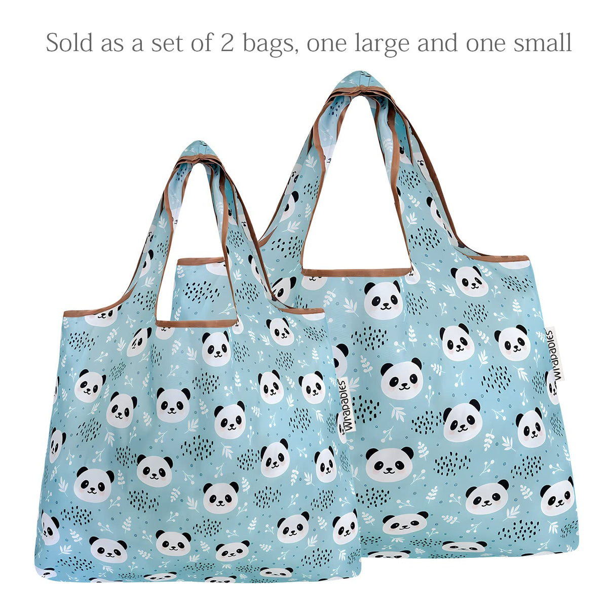 Allydrew Large & Small Foldable Tote Nylon Reusable Grocery Bags, Set Of 2, Panda