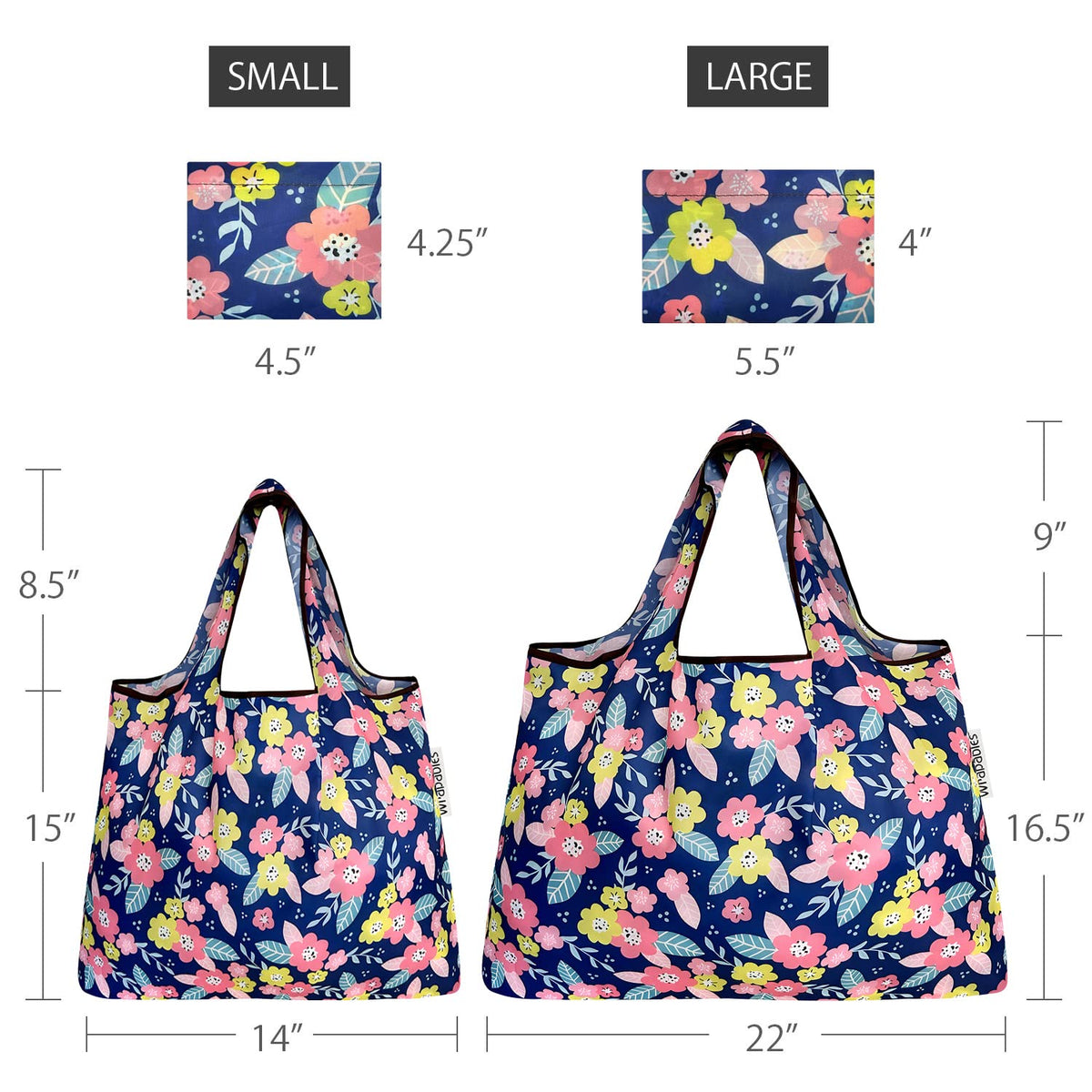 Allydrew Large & Small Foldable Tote Nylon Reusable Grocery Bags, Set Of 2, Pink & Yellow Corsage