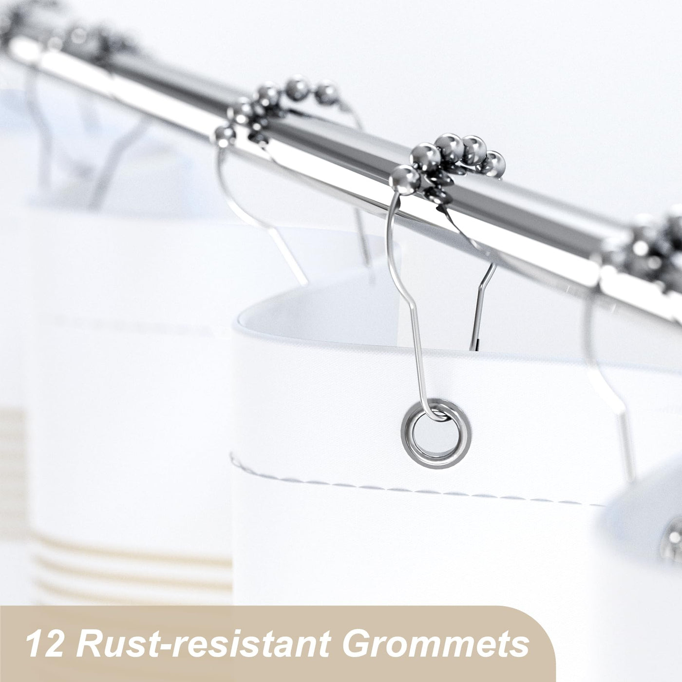 Amazerbath Neutral Shower Curtain, 72X72 Washable Cloth Light Tan Shower Curtain With 12 Shower Curtain Hooks, Fabric Khaki And