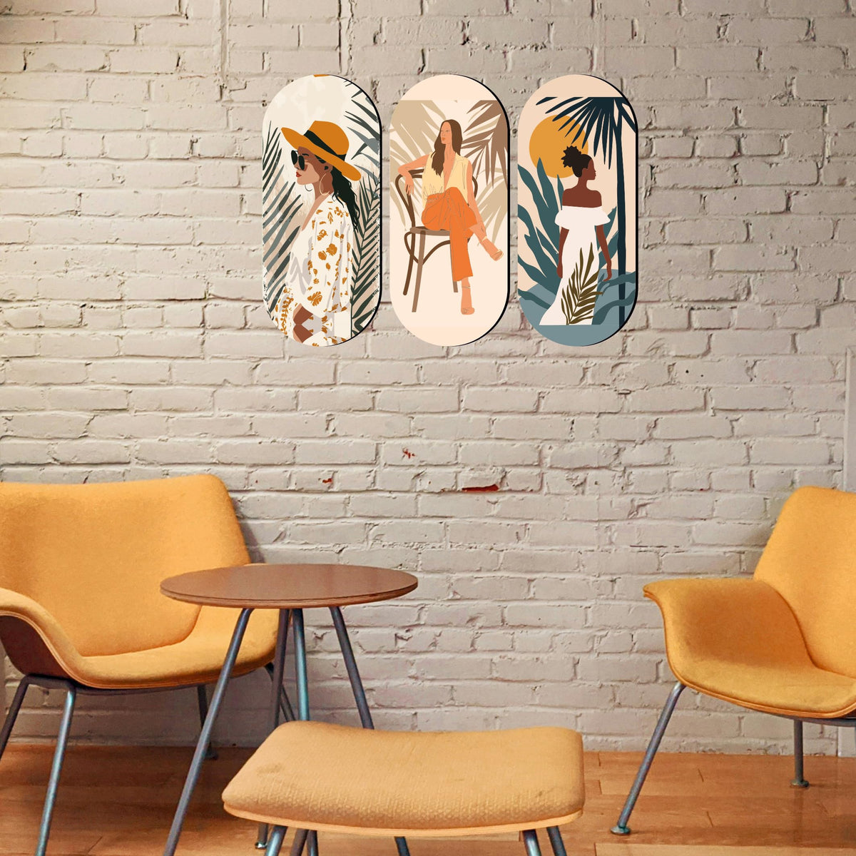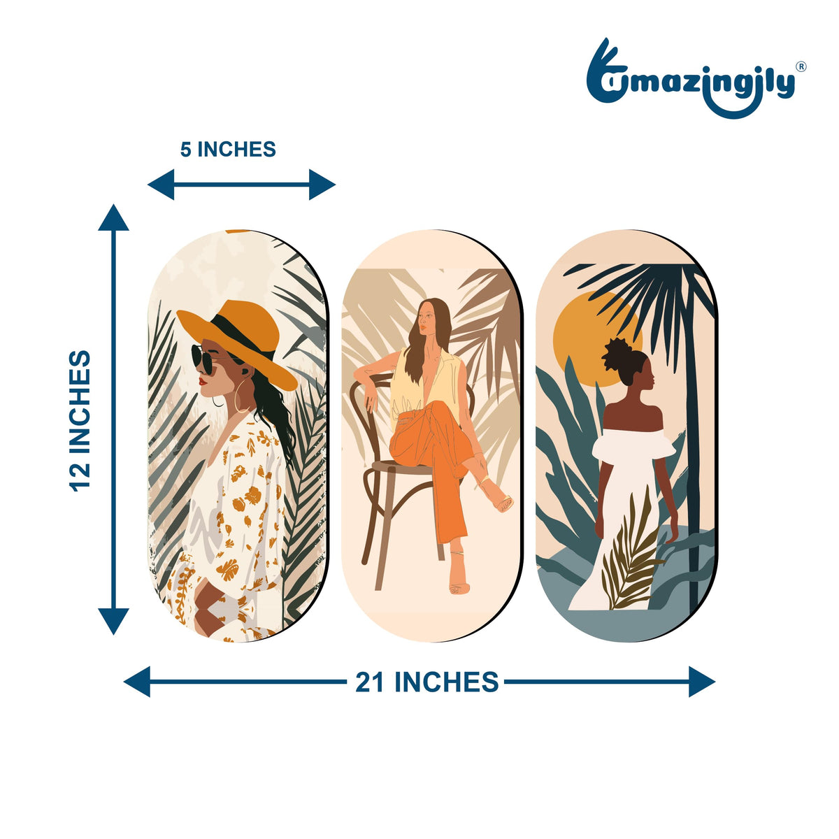 Amazingily Elegant Wall Decoration Art - Handcrafted Traditional Wooden Decor Piece (Set Of 3 | 11.5 * 5.5 Inches | Pattern-47)