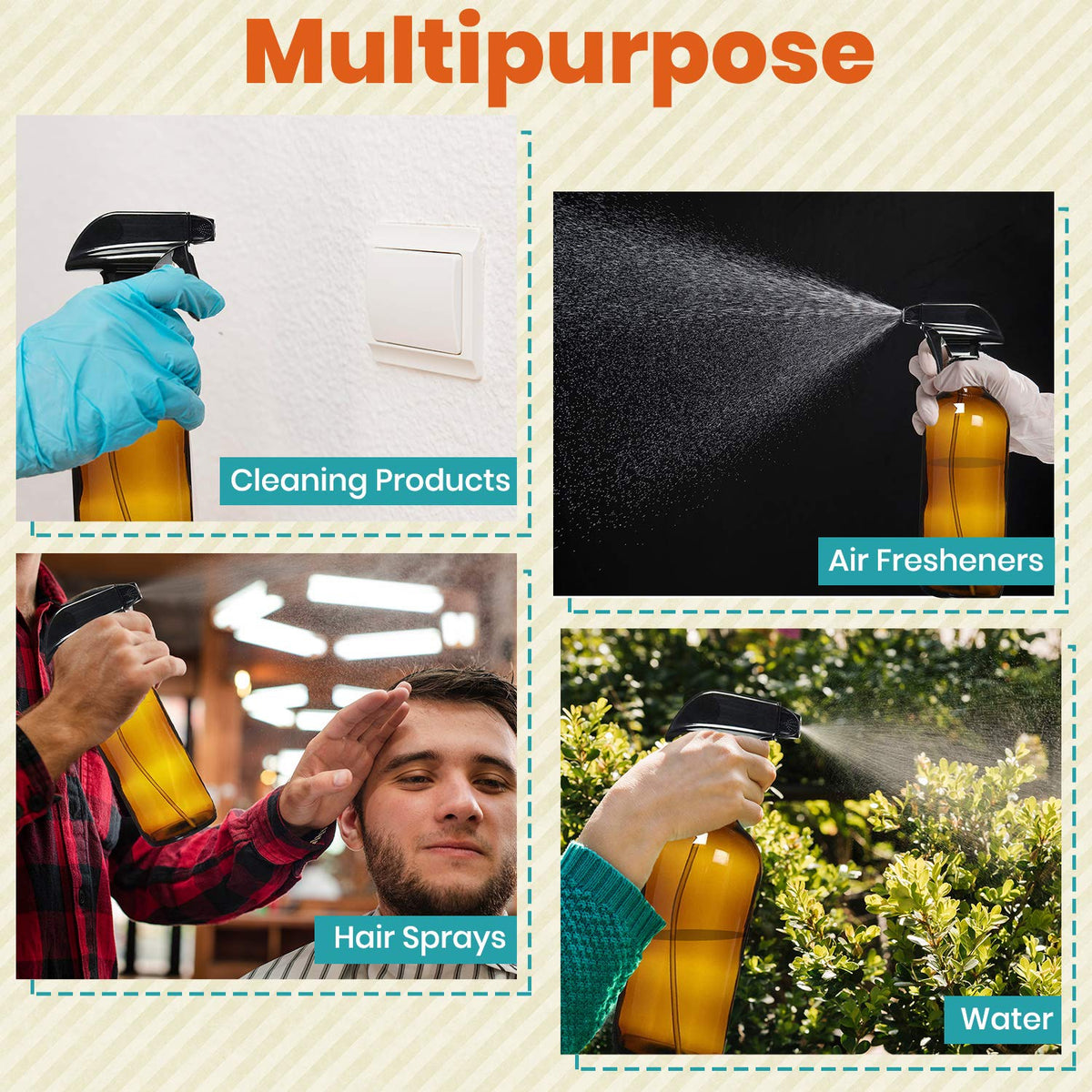 Amber Glass Spray Bottles For Cleaning Solutions (4 Pack) - 16 Ounce, Refillable Sprayer For Essential Oil, Water, Kitchen, Hair