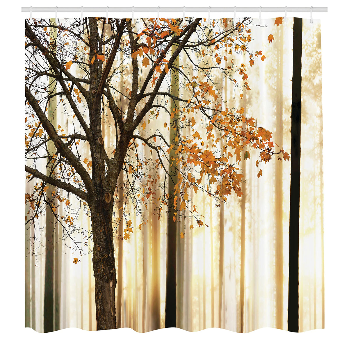 Ambesonne Autumn Shower Curtain, Picture Of A Fall Tree Orange Shade Leaf On An Abstract Woodland Background, Cloth Fabric For B