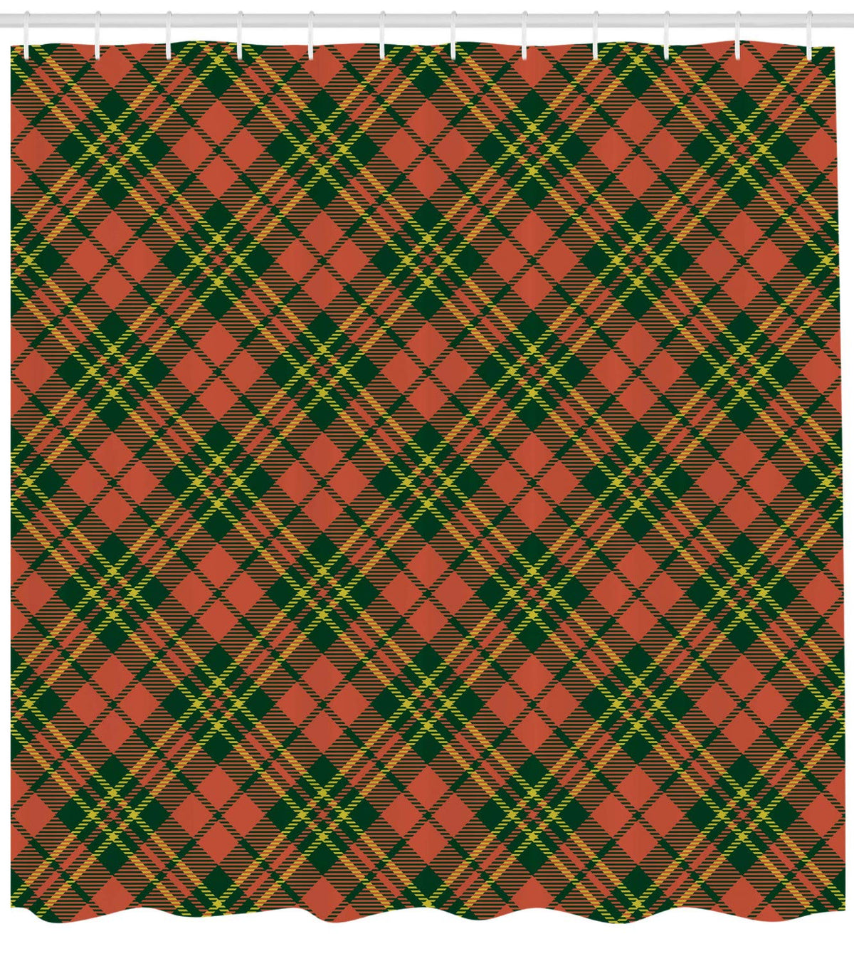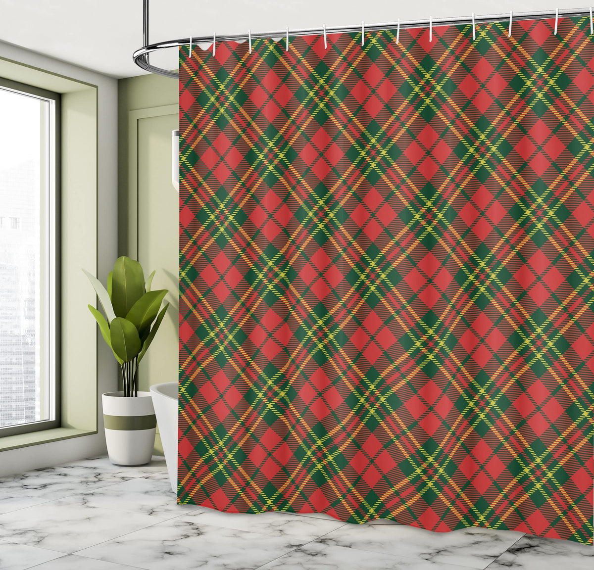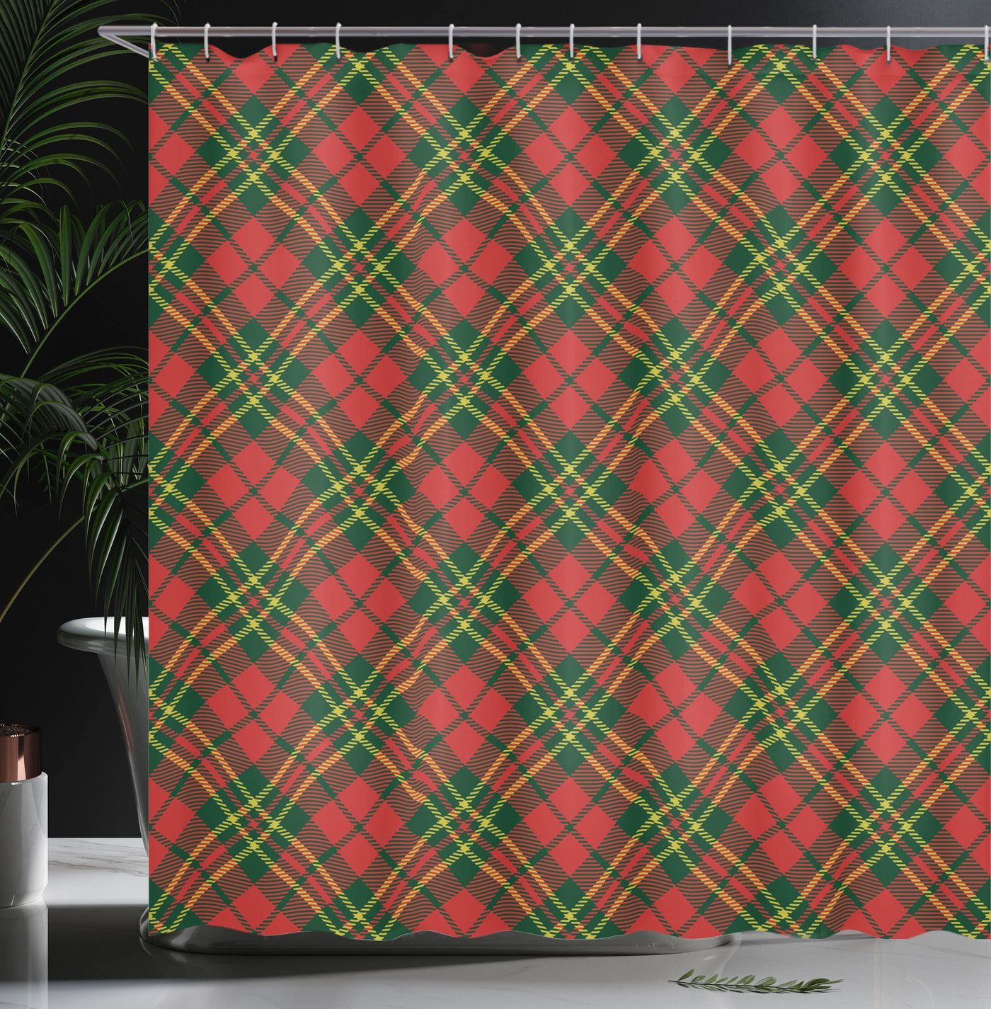 Ambesonne Checkered Shower Curtain, Irish Tartan Plaid Motifs In Christmas Colors Geometrical Stripes, Cloth Fabric Bathroom Dec