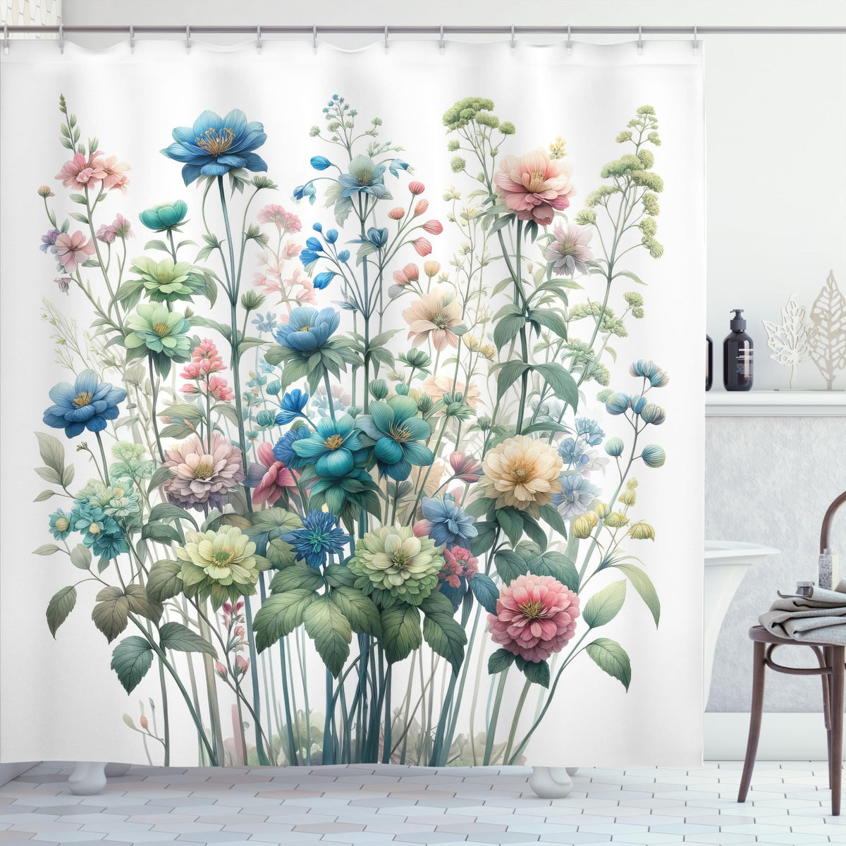 - Q: What are the dimensions of the Ambesonne Floral Shower Curtain? A: The Ambesonne Floral Shower Curtain measures 69 inches wide by 70 inches long.