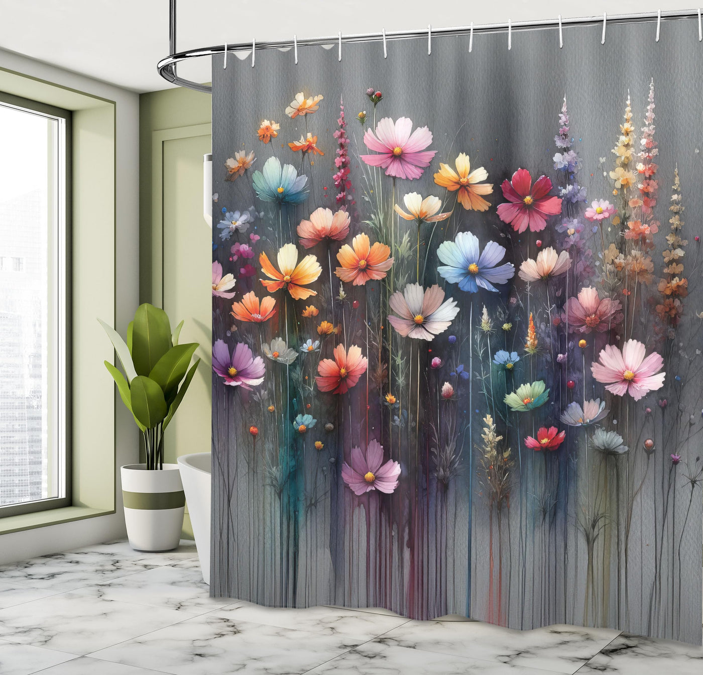 Ambesonne Floral Shower Curtain, Melancholic Bohemian Garden Composition With Abstract Lines Flowery Dream, Cloth Fabric Bathroo