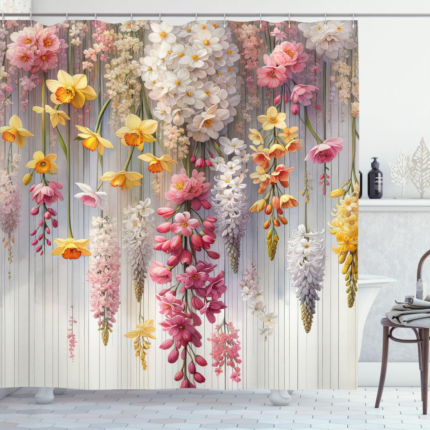 - Q: Is the Ambesonne Spring Shower Curtain machine washable? A: Yes, the shower curtain is machine washable and dries quickly after washing.