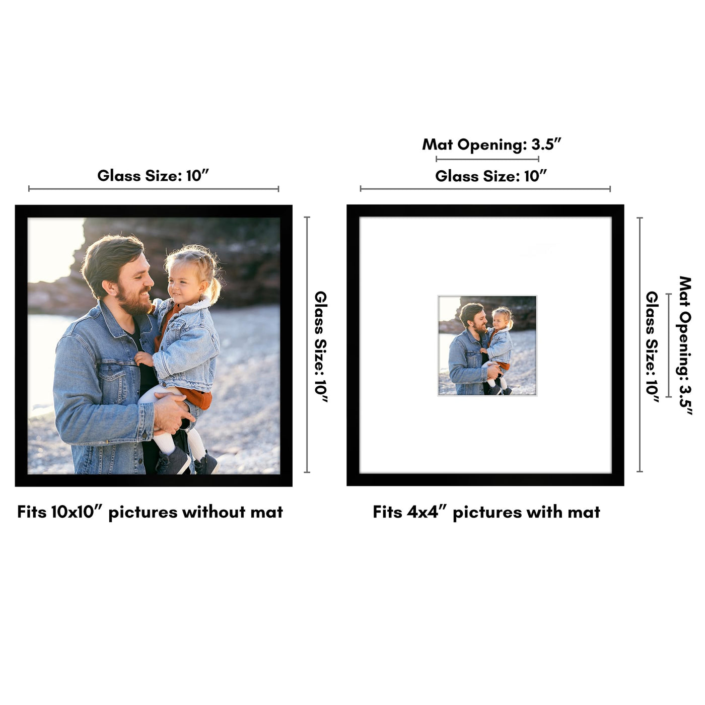 Americanflat 10x10 Picture Frame with Shatter-Resistant Glass - Use as 4x4 Frame with Mat or Display 10x10 Photo Without Mat - S