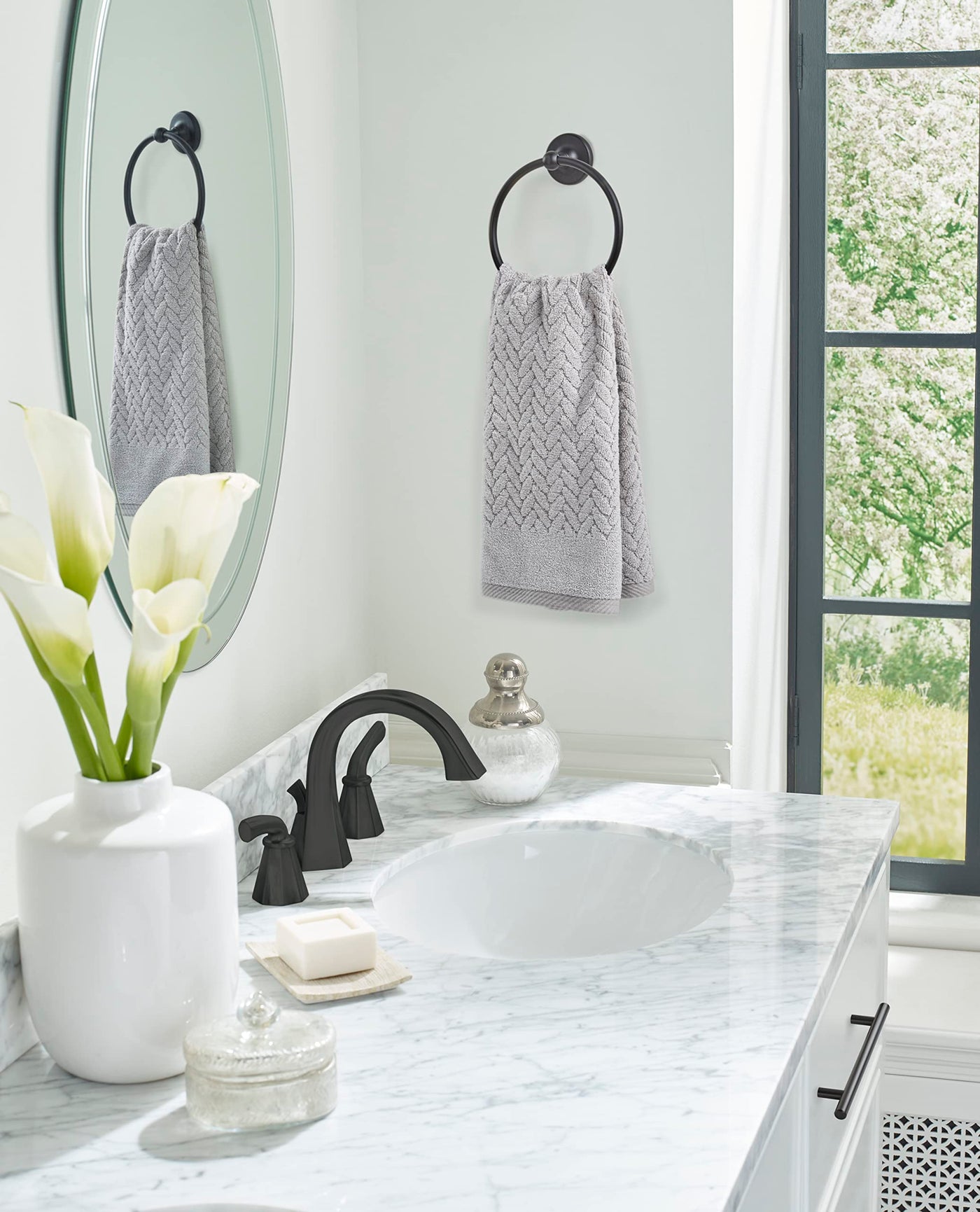 Amerock Wall Mounted Matte Black Towel Ring, Small Hand Towel Holder, Bathroom Accessories, Bath Hardware, Kitchen Towel Holder