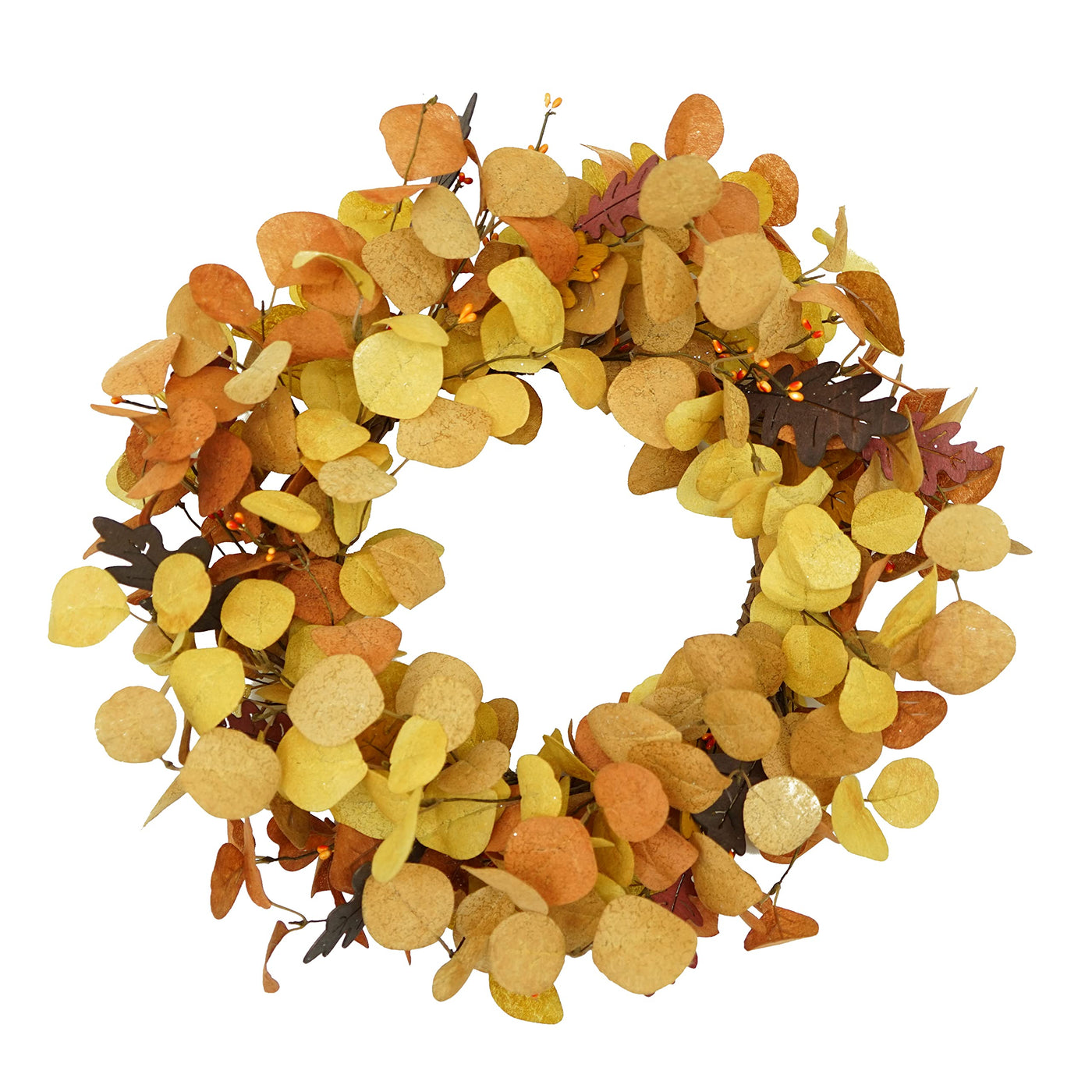 AMF0RESJ Artificial Fall Wreath for Front Door Autumn Eucalyptus Wreath with Orange Eucalyptus Leaves,Woodern Oak Leaves for Far