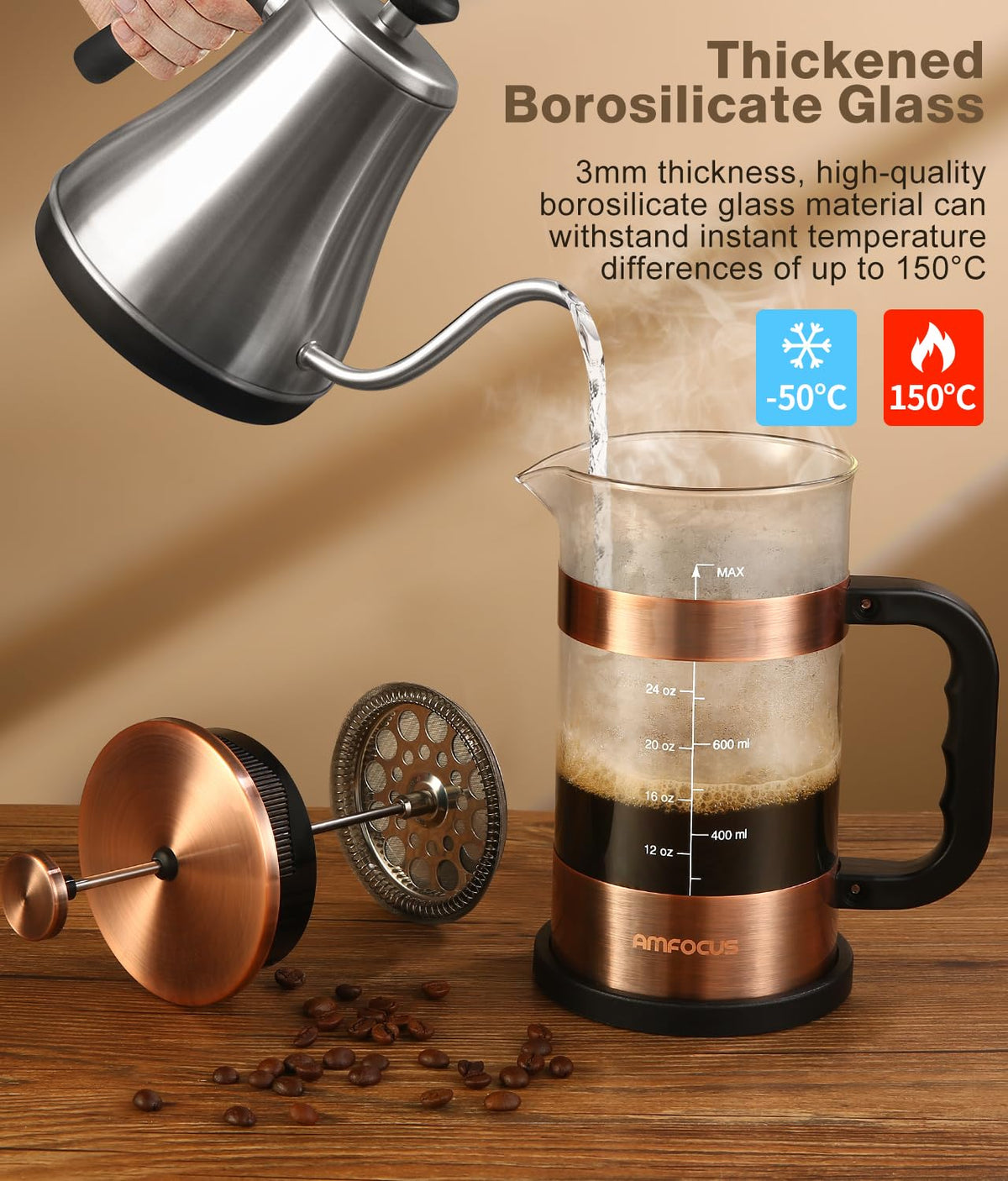 • Q: Is the French Press safe to use with hot liquids? A: Yes, the French Press is designed to safely hold hot liquids, thanks to its durable materials that prevent rust and deformation.