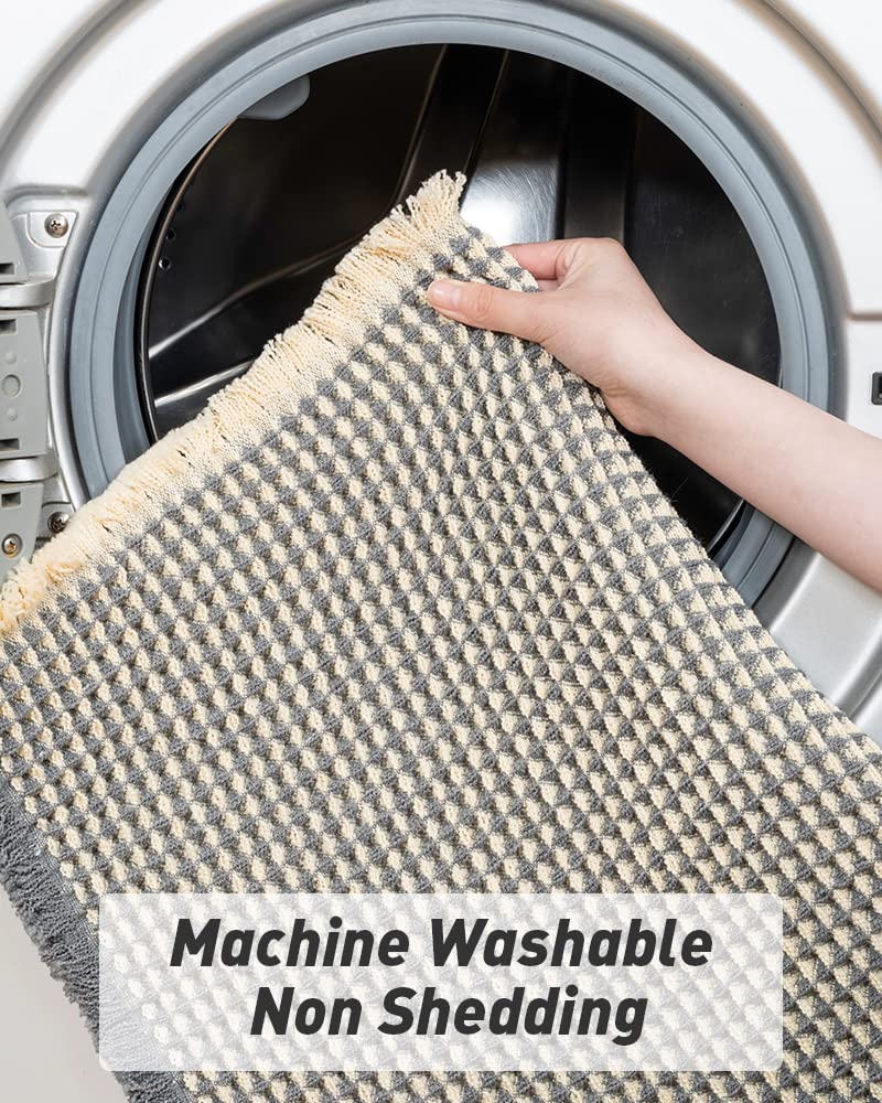 - Q: How does the rug contribute to comfort in the bathroom? A: The soft, flexible yarns and three-dimensional waffle design offer a cozy feeling underfoot, making it more comfortable to step onto after a shower.