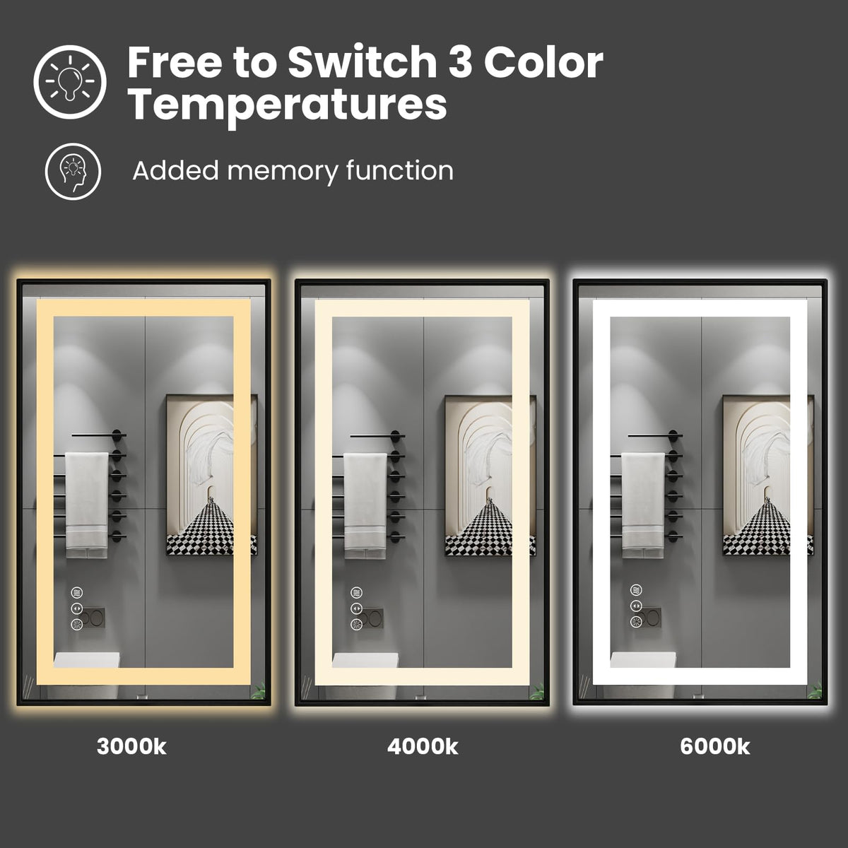 • Q: Does the mirror have a memory function? A: Yes, the memory function records your last light settings, so they will be retained for the next use.